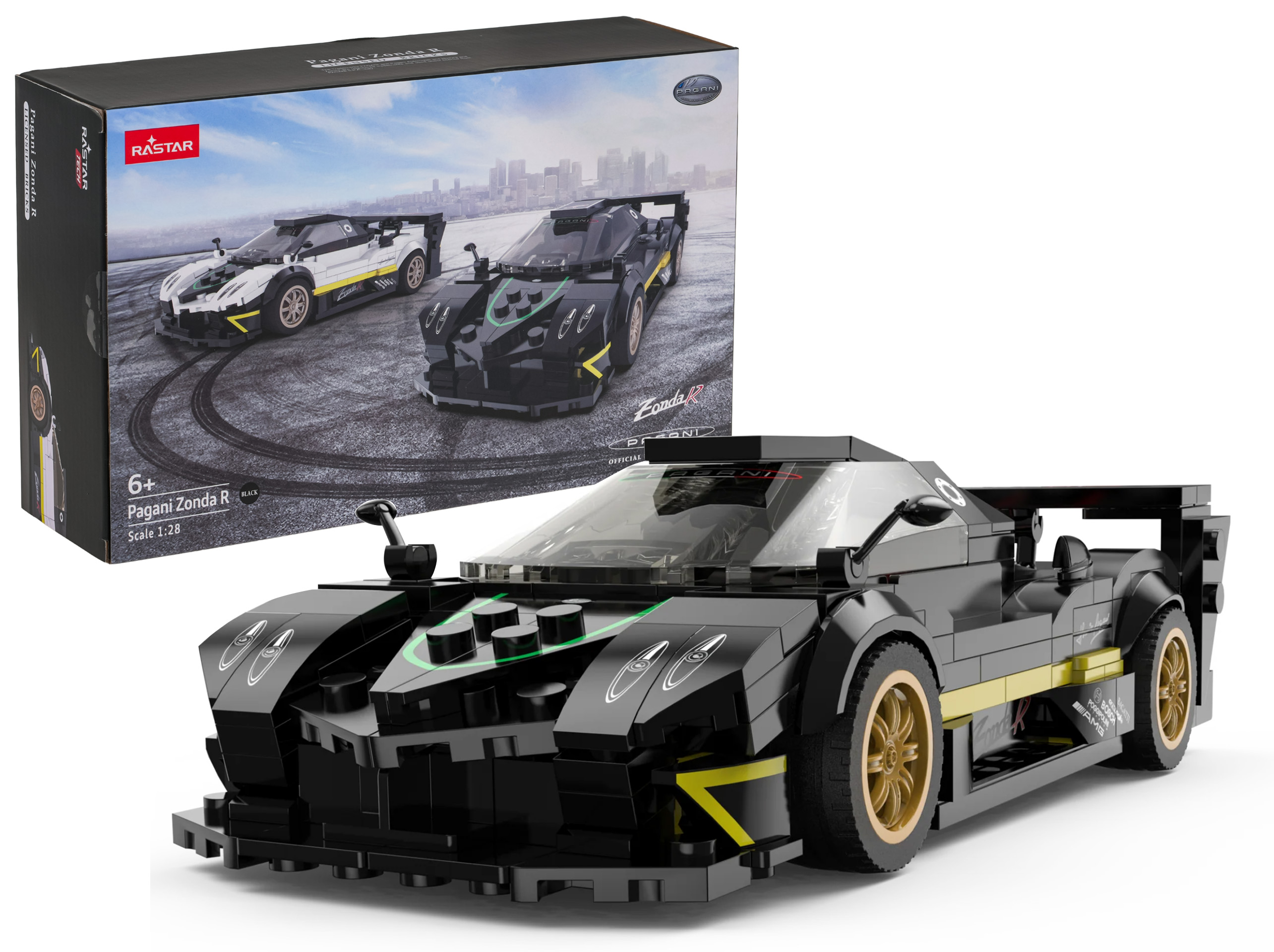 Strona główna » Tymczasowa » Autko 1:28 Pagani Zonda R Klocki Czarny RASTAR