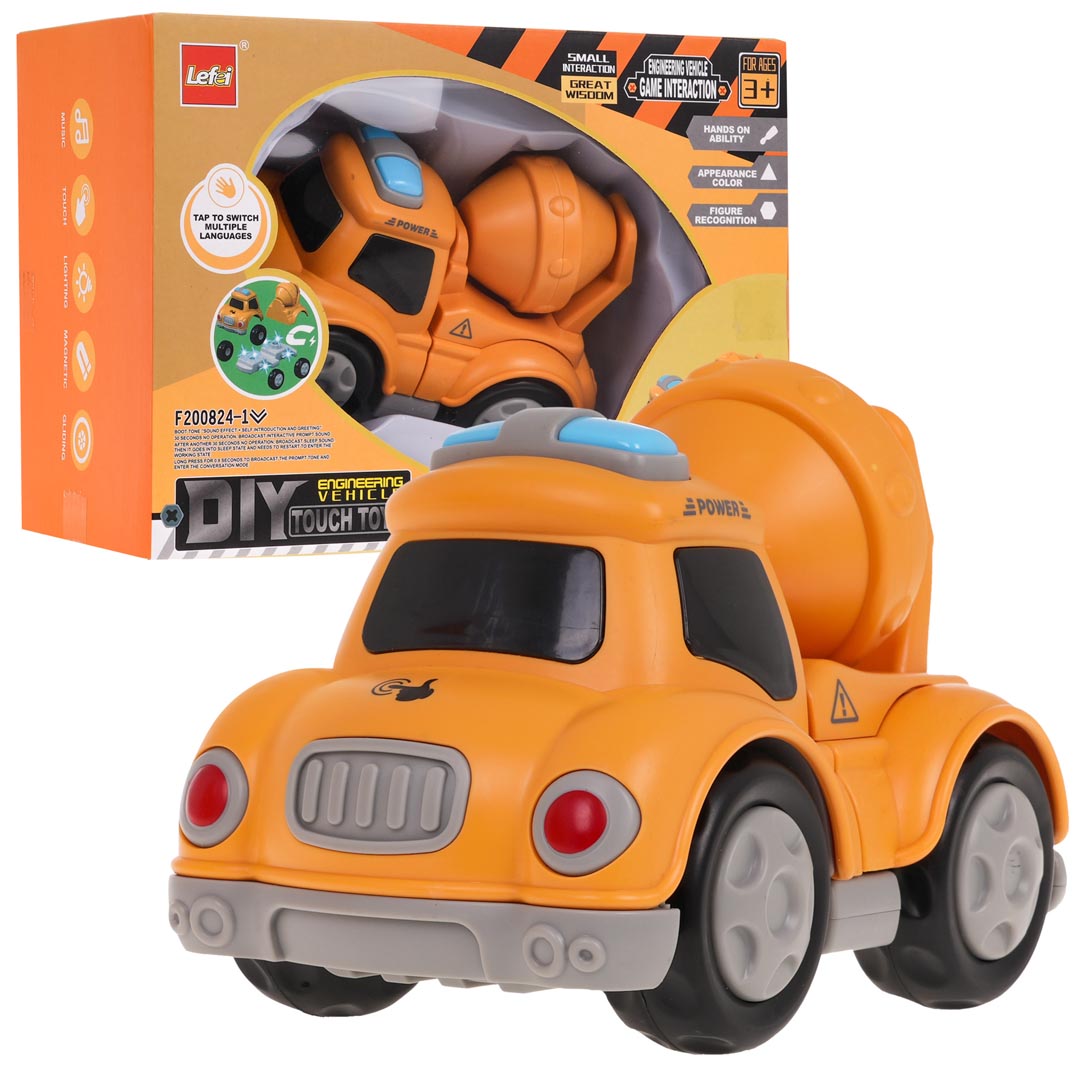 | Interaktywne autko budowane, betoniarka na magnesy dla dzieci powyżej 3-go roku życia. Autko wykonane zostało z najlepszej jakości plastiku i posiada efekty dźwiękowe i świetlne. Po naciśnięciu maski pojazdu usłyszymy odgłosy, jakie wykonuje betoniarka podczas pracy, śmiech dziecka czy wesołe piosenki. Efektom dźwiękowym towarzyszyć będzie mruganie kolorowych światełek na górze pojazdu. Pojazd rozłożyć możemy na czynniki pierwsze, bez pomocy żadnego narzędzia. Poszczególne elementy posiadają magnesy, dzięki czemu łatwo i trwale łączą się ze sobą. Zabawka zasilana jest bateriami typu 3 x AG13 (w zestawie). Funkcje autka: - odpowiednie dla dzieci powyżej 3-go roku życia, - wykonane z najlepszej jakości plastiku, - efekty dźwiękowe: odgłosy pracy maszyny, wesołe piosenki, śmiech dziecka, - efekty świetlne: mrugające światełka na dachu pojazdu, - możliwość rozłożenia pojazdu na czynniki pierwsze bez użycia narzędzi, - wbudowane magnesy w poszczególne elementy pojazdu, - ruchoma gruszka do mieszania betonu. |