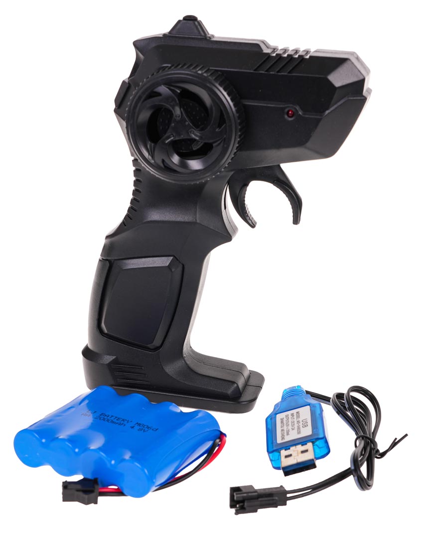 | - Crawler Monster Rock czerwony, - pilot, - akumulator 4,8 V, - kabel USB do ładowania akumulatora. |