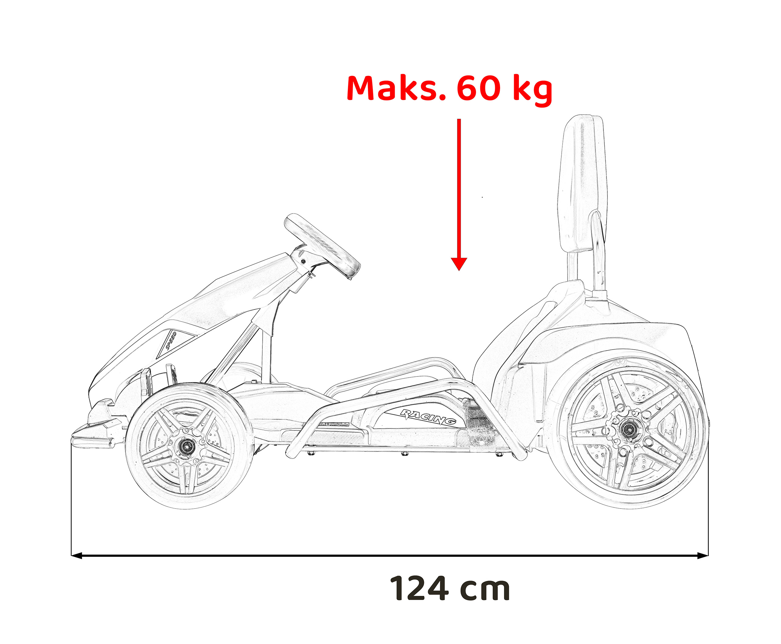 • Pojazd: 124x83x71 cm