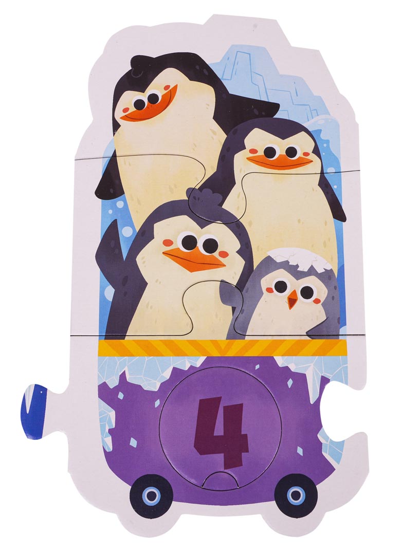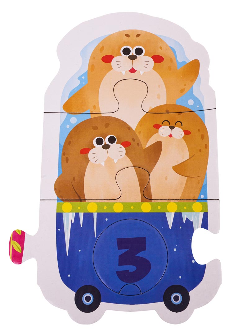 Gra edukacyjna matematyczna „Wagoniki” przeznaczona jest dla dzieci od 3. roku życia. Zestaw składa się z 40 elementów. Zadaniem gracza jest ułożenie pociągu złożonego z 10 wagoników. Każdemu wagonikowi dziecko musi przyporządkować odpowiednią cyfrę oraz obrazek z ilością zwierzątek odpowiadającą cyfrze na wagoniku.