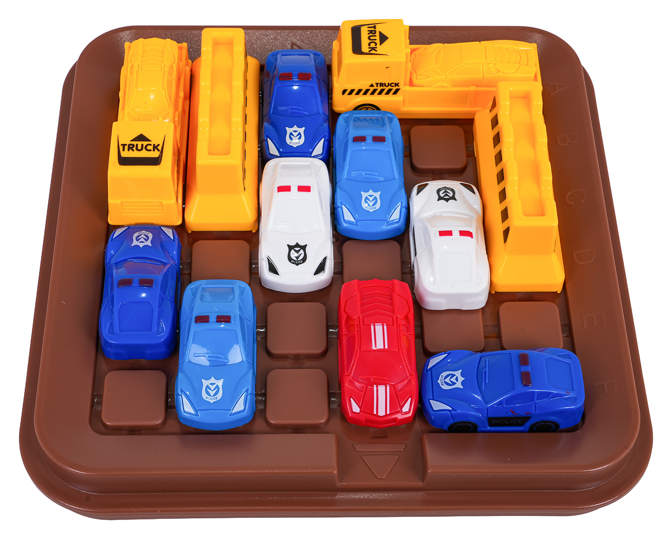 | Logiczna gra Traffic dla dzieci od szóstego roku życia. Gra ma na celu opracowanie strategii jak wydostać się z korka ulicznego. Poruszać się możemy tylko do przodu i do tyłu. Gra wykonana została z najlepszej jakości materiałów w żywych kolorach. W zestawie znajduje się plansza, czerwony pojazd zadaniowy, dwie blokady drogowe, dwie ciężarówki, siedem pojazdów policyjnych, instrukcja z czterdziestoma zadaniami i rozwiązaniami.
