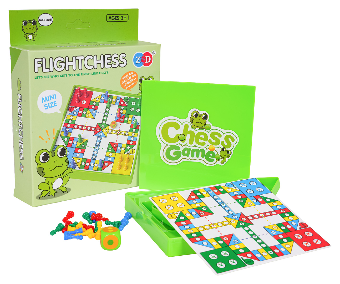 Gra planszowa Ludo Żaba dla dzieci od trzeciego roku życia. Gra jest niewielkich rozmiarów, dzięki czemu można ją zabrać wszędzie ze sobą.