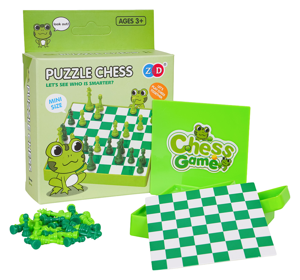 Popularna gra Szachy w wersji podróżnej dla dzieci od trzeciego roku życia. Nasze szachy posiadają zielono-białą planszę i jasnozielone oraz ciemnozielone pionki, przyciągają kolorem uwagę dziecka. Gra rozwija strategiczne myślenie i ćwiczy pamięć. Kompaktowa wersja sprawia, że można ją zabrać wszędzie ze sobą. Zapewni rozrywkę w każdym miejscu.