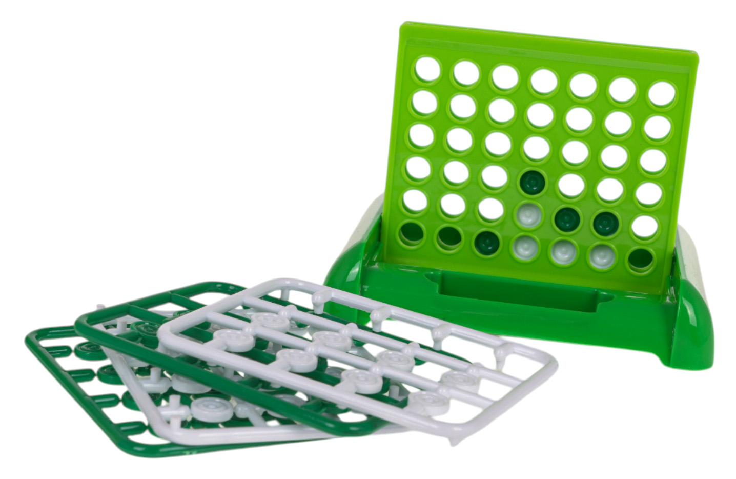 Gra zręcznościowa 4 w Rzędzie dla dzieci od 3-go roku życia. Gra polega na ułożeniu 4 żetonów w takim samym kolorze, na planszy dołączonej do zestawu, w rzędzie poziomym, pionowym lub ukośnym. Oczywiście nasz przeciwnik będzie uniemożliwiał nam wykonanie tego zadania. Kto ułoży wcześniej 4 żetony w rzędzie, wygrywa. Gra rozwija umiejętności logicznego myślenia i planowania. Rozwija wyobraźnię oraz kreatywność.