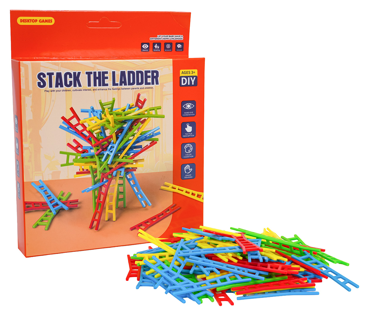 | - 25 drabinek niebieskich, - 25 drabinek żółtych, - 25 drabinek zielonych, - 25 drabinek czerwonych |