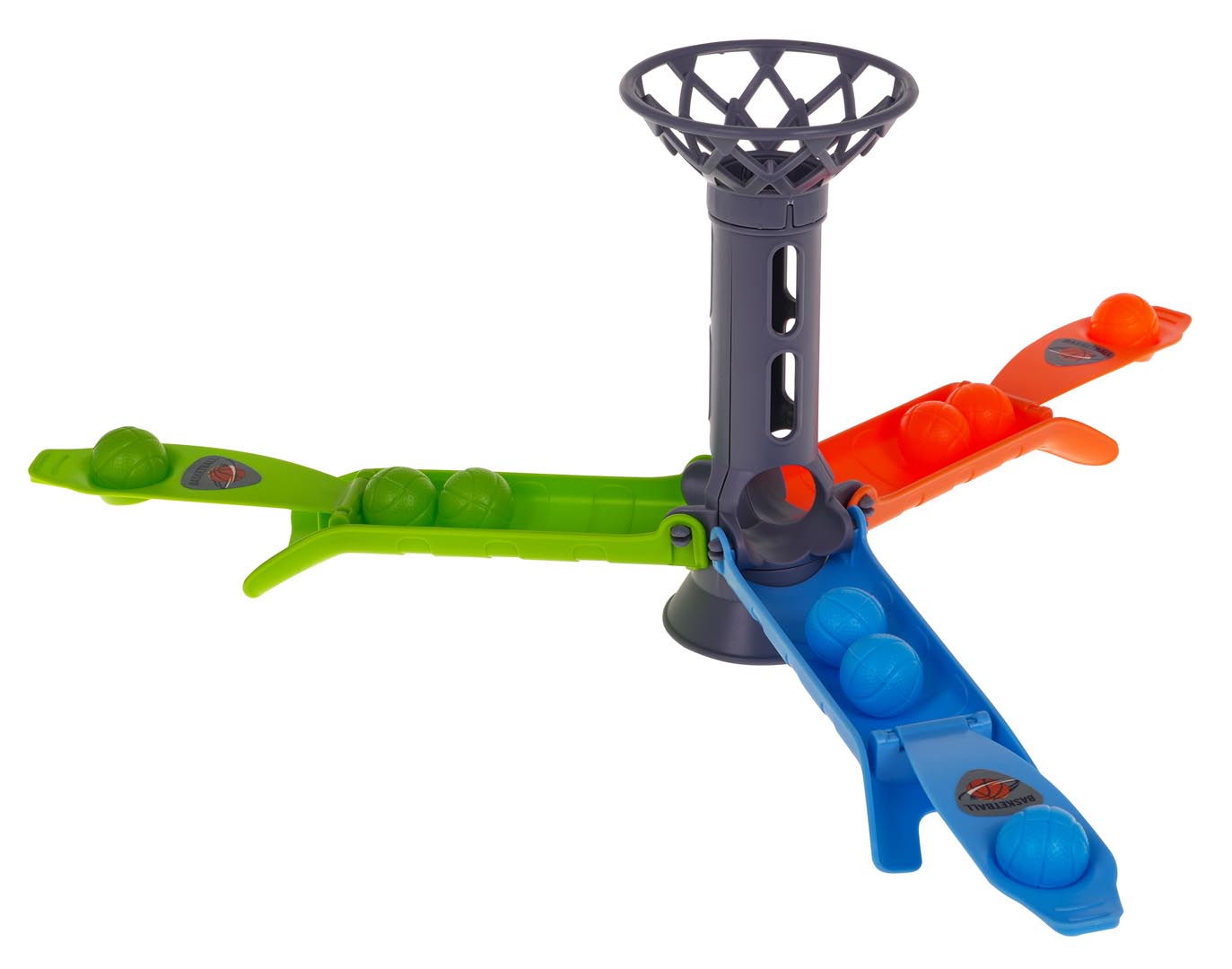 | - podstawka do gry, - 3 x kulka niebieska, - 3 x kulka zielona, - 3 x kulka pomarańczowa, - instrukcja, - naklejki dekoracyjne. |