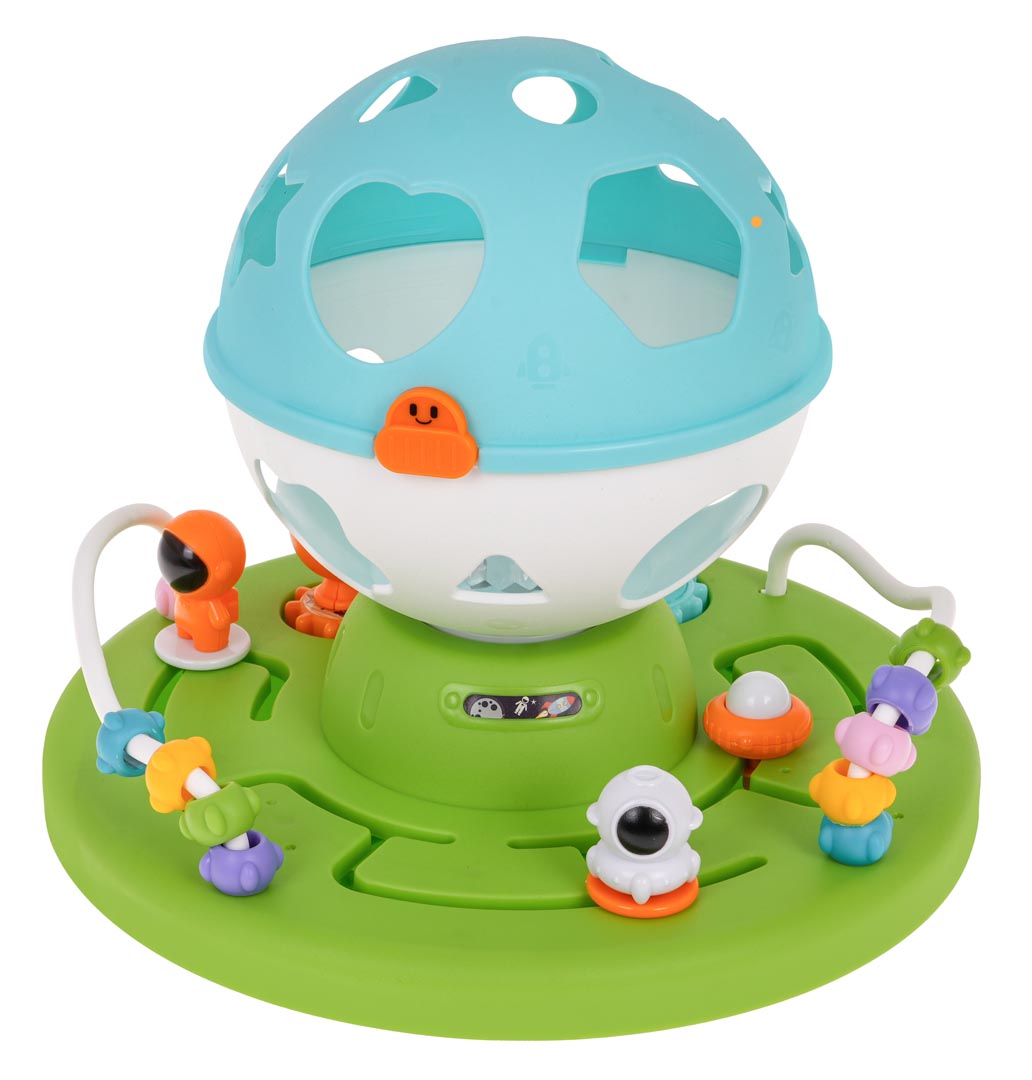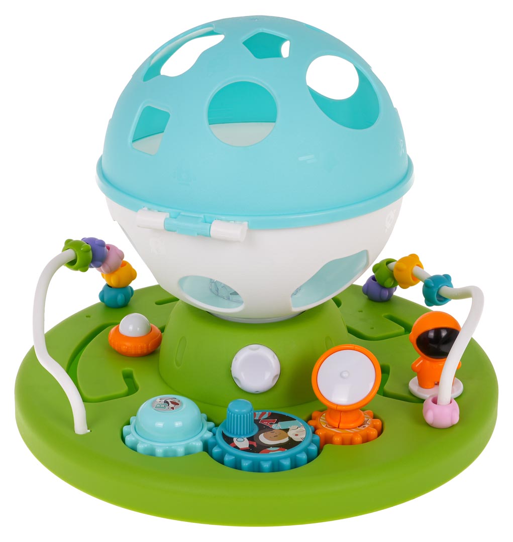 | Interaktywny, edukacyjny, sorter o tematyce kosmosu dla maluszków od 18-go miesiąca życia. Sorter wykonany został z najlepszej jakości plastiku w żywych kolorach, przyciągających wzrok maluszka. Zabawka składa się z podstawki, na której znajdują się kółeczka zębate do kręcenia, labirynty do pokonania i przekładanki. Na podstawce jest również okrągły sorter z otworami w kształcie figur geometrycznych. Maluszek musi przypasować klocuszki znajdujące się w zestawie do odpowiednich kształtów na sorterze. Po dopasowaniu wszystkich klocków sorter można otworzyć i zabawę rozpocząć na nowo. W zestawie znajdują się 4 klocuszki. Dodatkowo każdy z nich w środku posiada małe kuleczki, które sprawiają, że klocuszek grzechocze. Sorter posiada również funkcję światła i dźwięku, z wnętrza kuli wydobywa się gwiezdny blask i słychać melodie. Zabawa tym sorterem uczy maluszka dopasowywać i kategoryzować według kształtu i koloru. Poprawia zdolności poznawcze i motoryczne. Dziecko poznaje przyczynę i skutek oraz doskonali umiejętności rozwiązywania problemu. Zabawka zasilana jest bateriami typu 3 x AA 1,5 V (brak w zestawie). Funkcje zestawu: - odpowiedni dla maluszka od 18-go miesiąca życia, - wykonany z najlepszej jakości plastiku w żywych kolorach, - daje mnóstwo możliwości zabawy: sorter kształtów i kolorów, koła zębate do kręcenia, labirynty, przekładanki, - funkcje dźwiękowe: melodie, grzechoczące klocki, - funkcje świetlne: projektor, - klocuszki z kuleczkami w środku, |