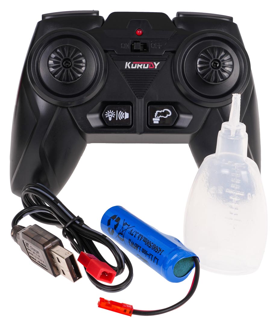 | - kombajn, - heder do zboża, - heder do kukurydzy, - pilot R/C, - pipetka na wodę, - kabel do ładowania USB. |