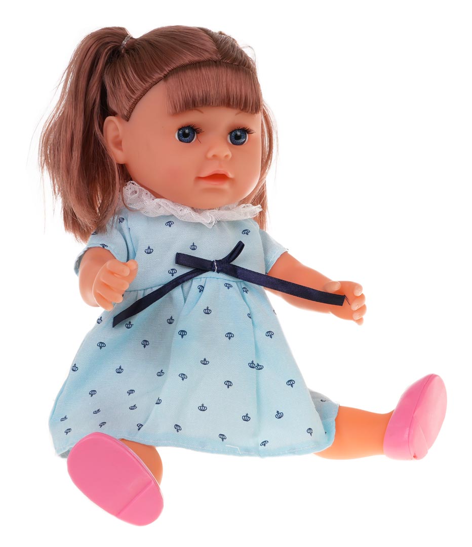 | Zestaw, interaktywna toaletka z lalką robiącą siusiu dla dzieci od 3-go roku życia. Toaletka wykonana została z najlepszej jakości plastiku, w żywych kolorach. Posiada podświetlane lustro, efekty dźwiękowe, blat na akcesoria i dwie półeczki. Laleczka dołączona do zestawu ma przyjemną w dotyku buzię, śliczne włosy, idealne do czesania, ruchome rączki i nóżki. Ubrana jest w sukienkę i butki. Lalka po napojeniu ją wodą, robi siusiu, na jej brzuszku znajduje się panel uruchamiający efekty dźwiękowe w postaci odgłosów płaczu, śmiechu, spania, marudzenia i innych wydawanych przez dziecko. W zestawie znaleźć możemy również pojemniczek do pojenia lali, mydelniczkę, pudełko na maść, pudełko na zasypkę, flakoniki z perfumami, pantofelki na zmianę, suszarkę, lusterko, grzebyk i szczotkę do włosów. Toaletka zasilana jest bateriami typu 4 x AA 1,5 V (brak w zestawie), lalka bateriami typu 3 x LR44 (w zestawie).