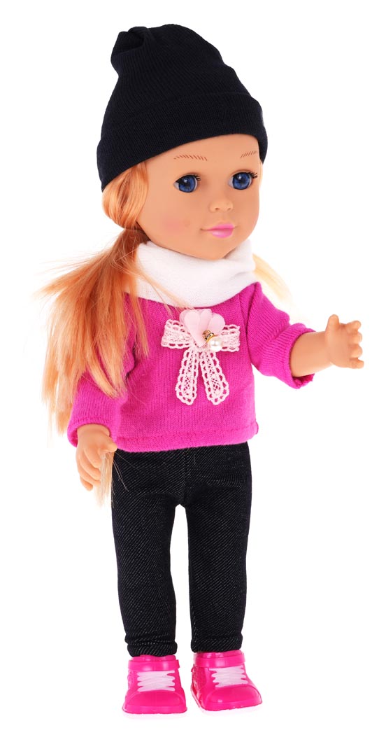 | Śliczna lalka, dla dziecka od 3-go roku życia. Lalka jest perfekcyjnie wykończona, z dbałością o każdy szczegół i w pełni bezpieczna dla dziecka. Ubrana jest w sweterek, spodnie, buty, czapkę i szalik. Ubranka możemy zdejmować i przebierać lalkę w inne. Ruchome nóżki, rączki i głowa, ułatwiają przebieranie. Lalka zasilana jest bateriami typu 3 AG13 (w zestawie), po naciśnięciu na jej brzuszek słychać wesołą piosenkę. Zabawka stymuluje rozwój motoryczny dziecka. Funkcje zabawki: - zabawka dla dzieci od 3-go roku życia, - znakomicie wykonana, z dbałością o szczegóły, - śliczny wygląd sprawia, że dziecko nie będzie chciało się z nią rozstawać, - ruchome rączki, nóżki i głowa, - śliczne długie włosy, idealne do czesania, - zdejmowane ubranko, - efekty dźwiękowe: wesoła piosenka po naciśnięciu na brzuch lalki, - zabawka stymuluje rozwój motoryczny dziecka. |
