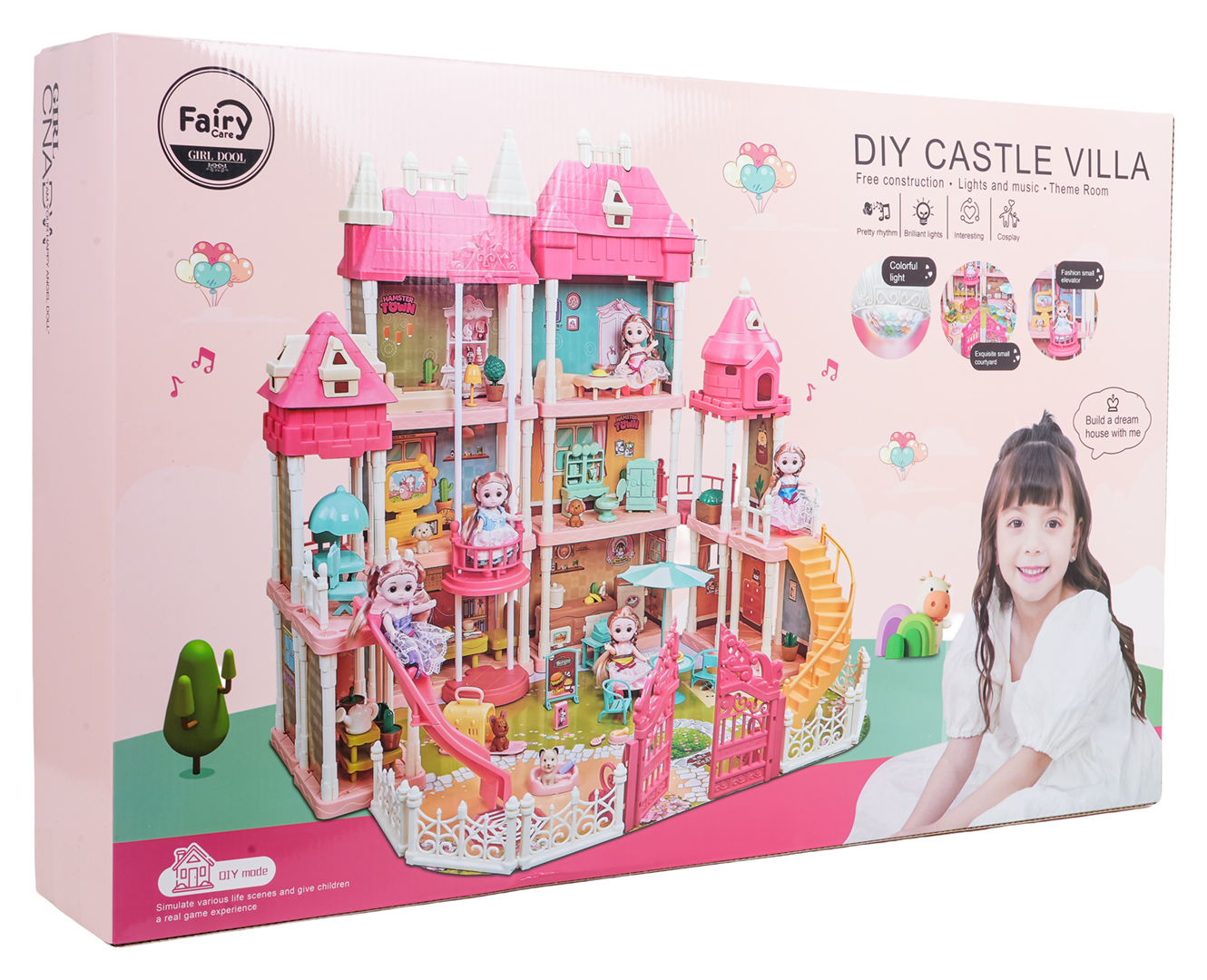 | Śliczny, duży, różowy, duży domek z wyposażeniem i laleczkami w zestawie dla dzieci od trzeciego roku życia. W dużym domku znajduje się: sypialnia, salon, sala telewizyjna, pokój do nauki, kuchnia, jadalnia, składzik, są też schody, balkon, zjeżdżalnia, dziedziniec wypoczynkowy i brama. Każde z pomieszczeń jest kompletnie umeblowane, w zestawie mamy też 2 laleczki. Zestaw wykonany został z najlepszej jakości plastiku w żywych kolorach przyciągających wzrok dziecka. Do zestawu dołączono również kartonową podkładkę pod domek. Zestaw zasilany jest bateriami typu 2 x AAA 1,5 V (brak w zestawie). Baterie potrzebne do oświetlenia domu i odtwarzania melodii. Funkcje zestawu: - odpowiedni dla dzieci powyżej trzeciego roku życia, - wykonany z najlepszej jakości plastiku w żywych kolorach, - kompletnie wyposażony, - wiele pomieszczeń, duży dziedziniec i 2 laleczki w zestawie, - efekty dźwiękowe i świetlne: spokojna melodia i świecąca lampa, - idealny na prezent. |