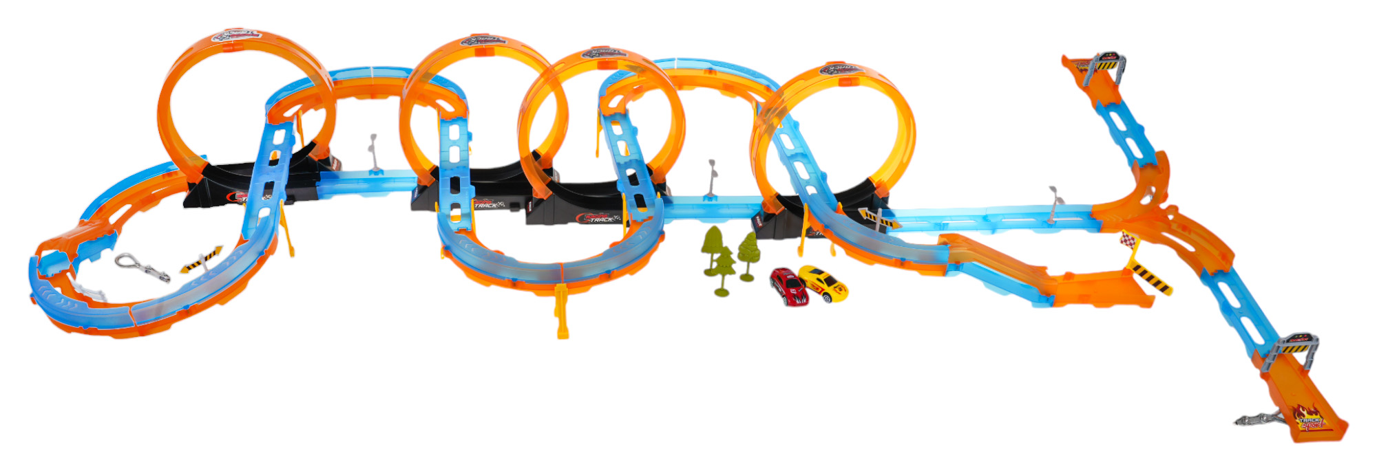 | Mega tor wyścigowy z pętlami 360 stopni, ostrymi zakrętami, dla dzieci od 3-go roku życia. Tor wykonano z najlepszej jakości plastiku w żywych kolorach. Na zestaw składa się 74 elementy do samodzielnego montażu. Tor posiada odcinki proste do rozpędzenia pojazdu, 4 pętlę 360 stopni, ostre zakręty i dwa pojazdy. Pojazdy napędzane są napędem pull back. Wystarczy delikatnie nacisnąć pojazd do tyłu, by przejechał tor z pełną mocą. Funkcje toru: - odpowiedni dla dzieci od 3-go roku życia, - wykonany z najlepszej jakości plastiku w żywych kolorach, - cztery pętle 360 stopni, - pojazdy z napędem pull back. |