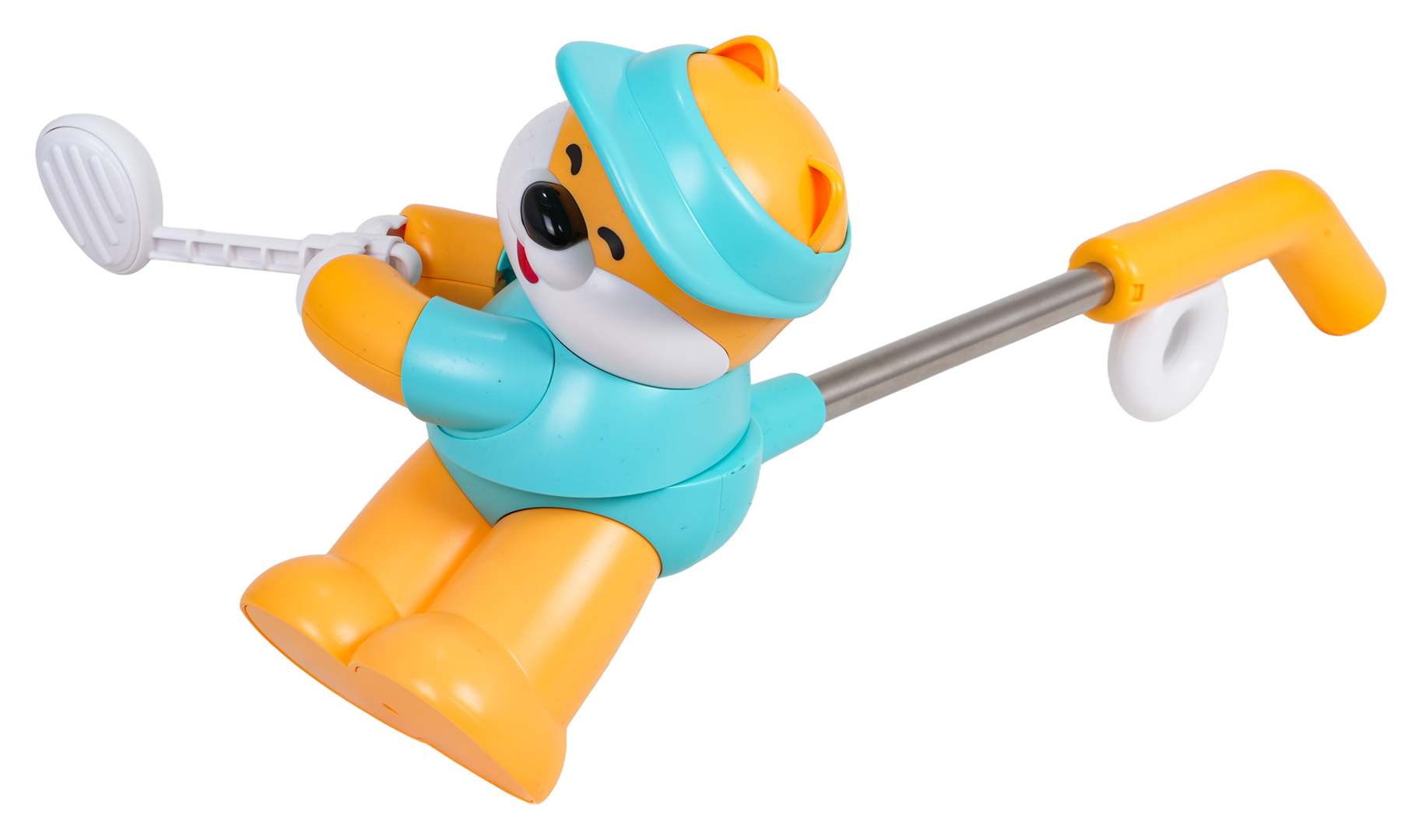 | Tor do gry w golfa ze zwierzakami z zoo i matą piankową dla dzieci powyżej trzeciego roku życia. Idealna zabawka zarówno do domu jak i na zewnątrz. Elementy toru wykonano z najlepszej jakości tworzyw sztucznych, bezpiecznych dla dzieci. Zabawka idealna do aktywnego spędzenia czasu. Zadaniem dziecka jest poprowadzenie piłki do dołka. Misiu golfista posiada kij, na którym znajduje się kółeczko z suwakiem. Przesuwając suwak do siebie, powodujemy uderzenie kijem golfowym w piłeczkę. Piłeczkę wykonano z drewna, jest lekka i dobrze się toczy. Dołek zasilany jest bateriami typu 3 x AG13 (w zestawie). Po trafieniu piłeczką w dołek usłyszymy fanfary.