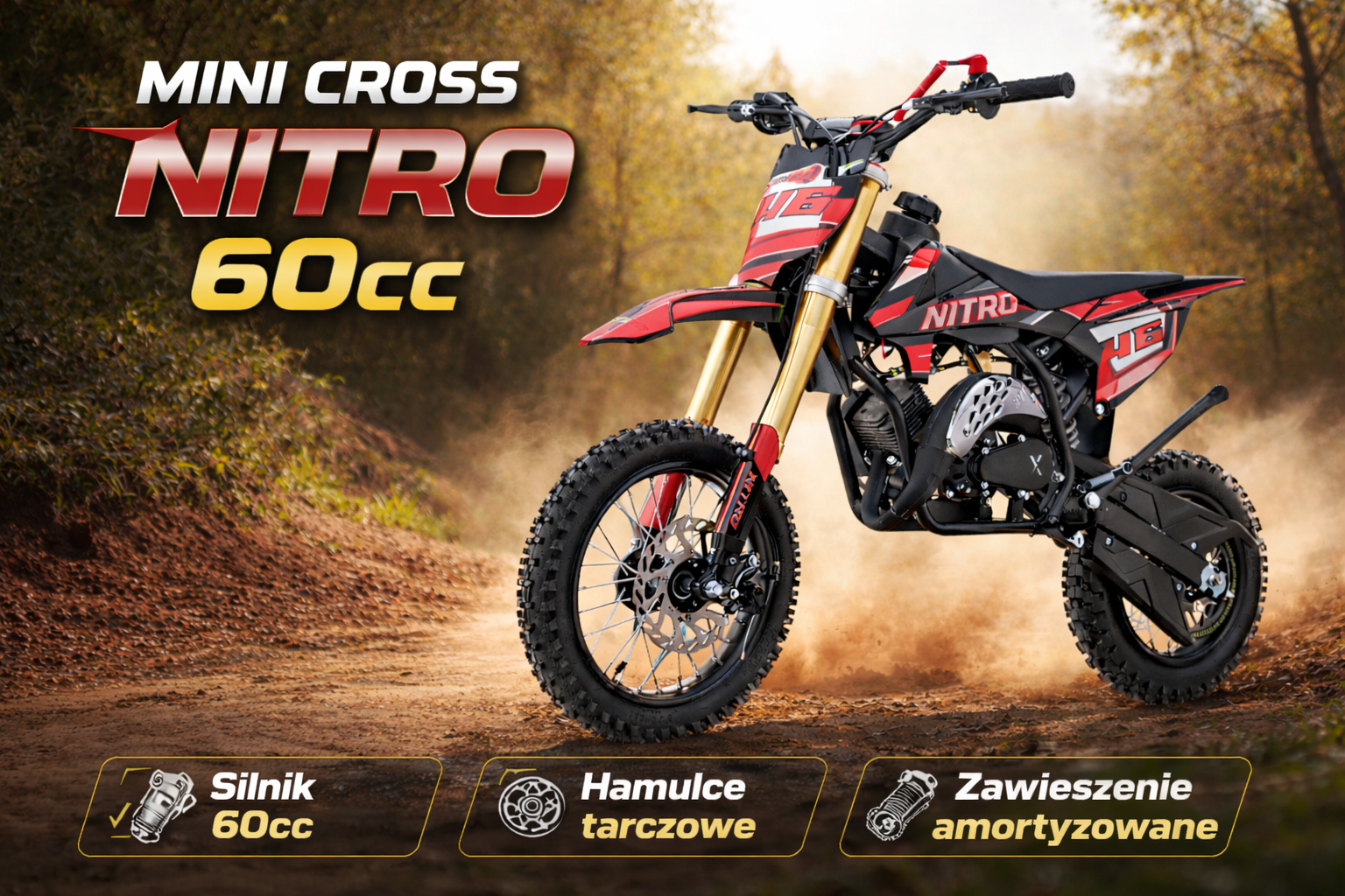 Motor spalinowy NITRO 60cc to doskonały wybór dla osób szukających solidnego, dynamicznego pojazdu do jazdy rekreacyjnej i terenowej. Dzięki mocnej konstrukcji oraz sprawdzonym rozwiązaniom technicznym zapewnia świetne osiągi, bezpieczeństwo i komfort użytkowania.