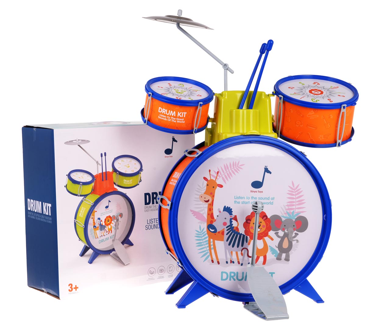| Kolorowa perkusja Safari dla dzieci od 3-go roku życia. Zestaw składa się z 3 bębnów, talerza i pałeczek. Wykonany został z najlepszej jakości materiałów w żywych kolorach przyciągających wzrok dziecka i zachęcających do zabawy. Na dużym bębnie znajduje się rysunek ze zwierzątkami. Dźwięk z dużego bębna uruchamia się po uderzeniu nożnym pedałem, a z górnych bębnów i talerza, po uderzeniu pałeczkami. Zabawa tym zestawem rozwija zainteresowanie muzyką i talent dziecka, uczy poczucia rytmu i ćwiczy koordynacje ręka-oko. Funkcje zestawu: - odpowiedni dla dzieci od 3-go roku życia, - wykonany z bezpiecznych materiałów, - żywa kolorystyka przyciąga wzrok dziecka. |