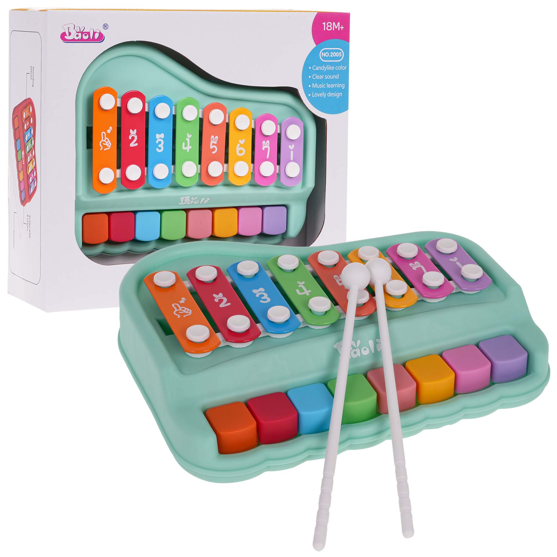 | Zestaw 2w1 pianinko i cymbałki dla dzieci od 18-go miesiąca życia. Zabawka została wykonana z najlepszej jakości plastiku i metalu, żywe kolory przyciągają wzrok dziecka i zachęcają do zabawy. Do zestawu dołączono dwie pałeczki. Funkcje zestawu: - zestaw 2 w 1, pianinko i cymbałki, - przeznaczony dla dzieci od 18-go miesiąca życia, - wykonany z najlepszej jakości materiałów: plastik i metal, - żywe kolory przyciągają wzrok dziecka, - w zestawie 2 pałeczki, - połączenie nauki z zabawą. |