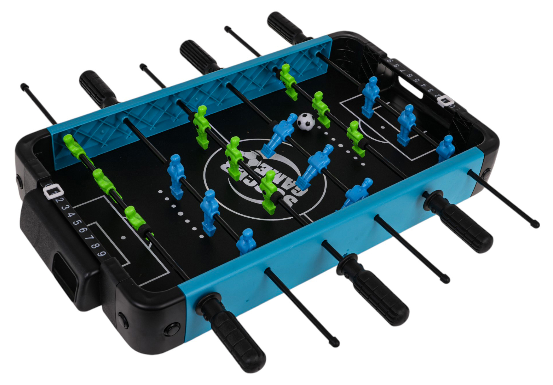 | Wersja stołowa popularnej gry przeznaczonej dla dwóch osób dla dzieci od 5-go roku życia. Stół jest lekki i kompaktowy, można zabrać go wszędzie ze sobą. Uchwyty bardzo łatwo się obracają, montaż jest bardzo prosty, instrukcja i śrubokręt dostępne w opakowaniu. Funkcje zestawu: - odpowiedni dla dzieci powyżej 5-go roku życia, - wykonany z najlepszej jakości materiałów w żywych kolorach, - lekki, przenośny, można zabrać go wszędzie, - manualny licznik punktów od 0 do 9, - łatwe w obracaniu uchwyty, - prosty montaż. |