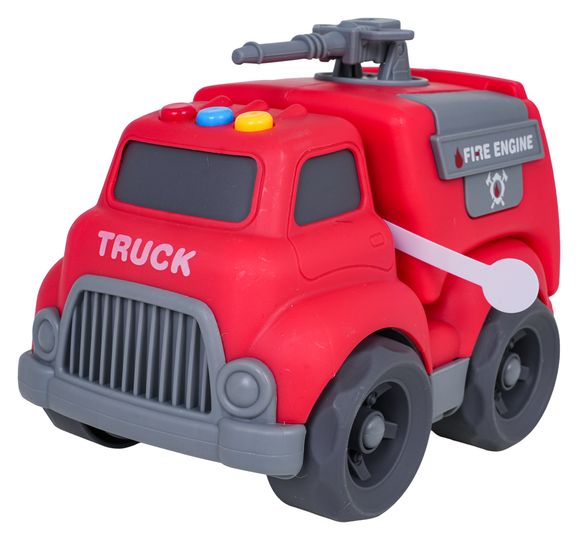 Funkcje: - zabawka odpowiednia dla dzieci od osiemnastego miesiąca życia, - wykonana z najlepszej jakości materiałów, - żywe kolory zachęcają dziecko do zabawy, - efekty dźwiękowe: odgłosy startu pojazdu, jazdy i cofania, wesoła melodia, - efekty świetlne: mrugające światełka na dachu pojazdy, - ruchome elementy: tylna klapa pojazdu i podnoszony wąż strażacki, - autko nie posiada ostrych krawędzi i jest w pełni bezpieczne dla małych dzieci, - idealna zabawka do domu i do piaskownicy. |