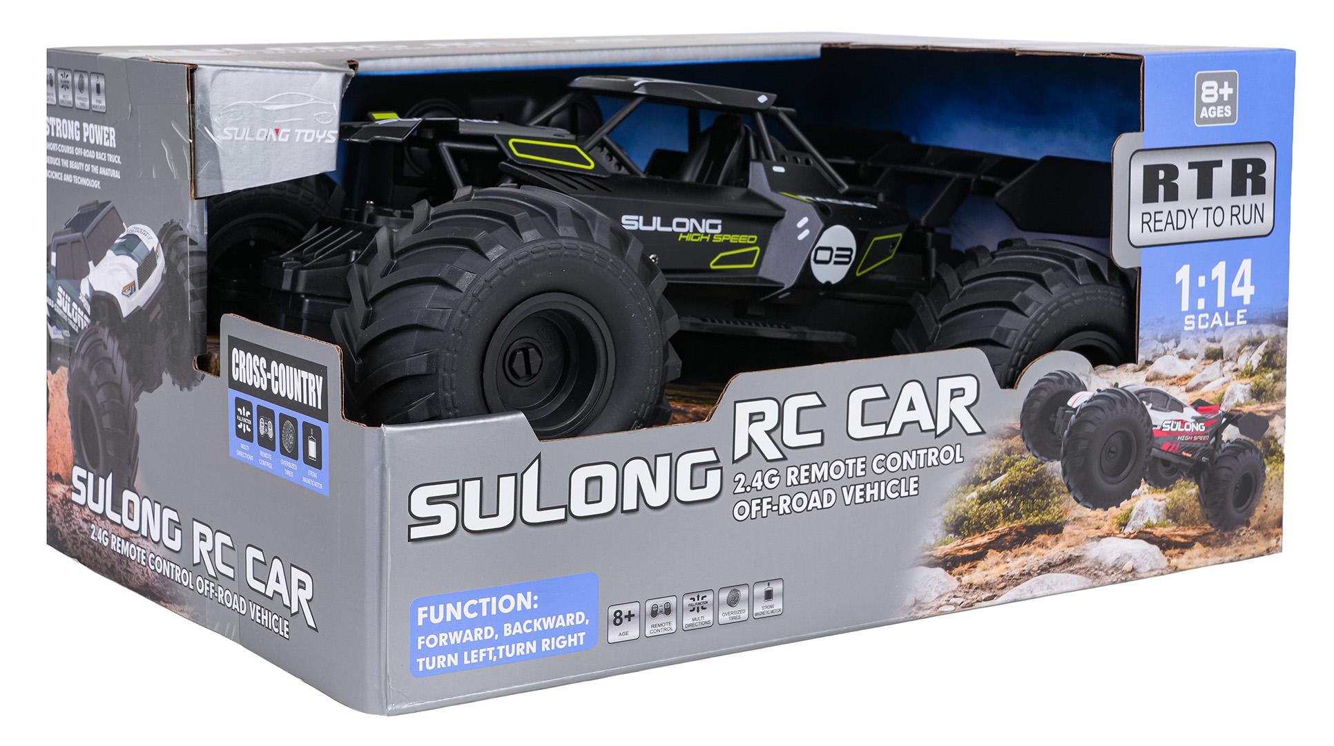 Funkcje pojazdu: - dla dzieci od ósmego roku życia, - skala 1:14, - metalowa karoseria, - antykolizyjna konstrukcja, - amortyzowane zawieszenie, - regulacja skrętu, - duże gumowe opony, - jeździ we wszystkich kierunkach, - pilot zdalnego sterowania 2,4GHz. |