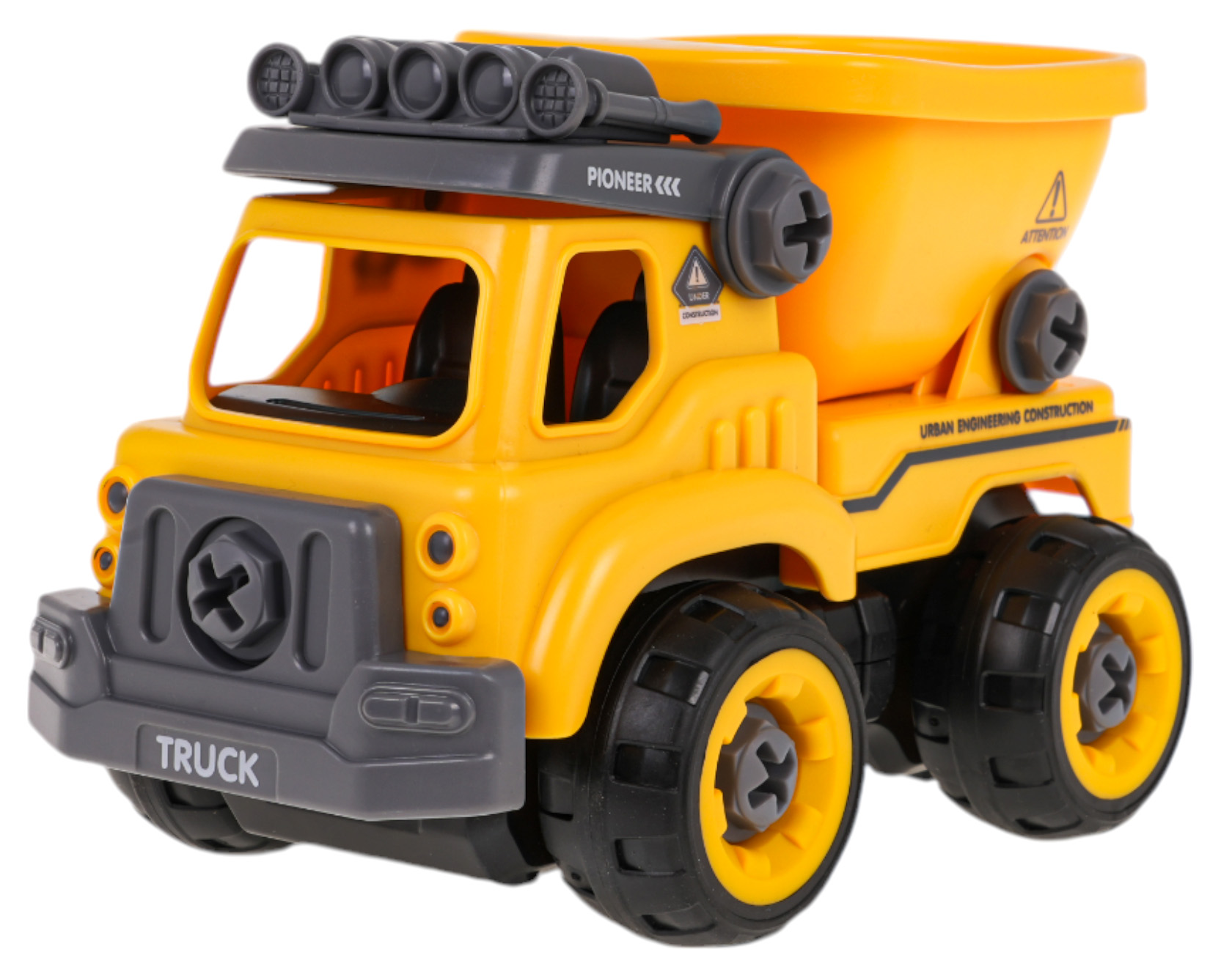 | - pojazd budowlany, - wkrętarko-wiertarka będąca jednocześnie pilotem, - śrubokręt, - wymienne bity, płaski i krzyżakowy, - panel sterujący na baterie, - instrukcja. |