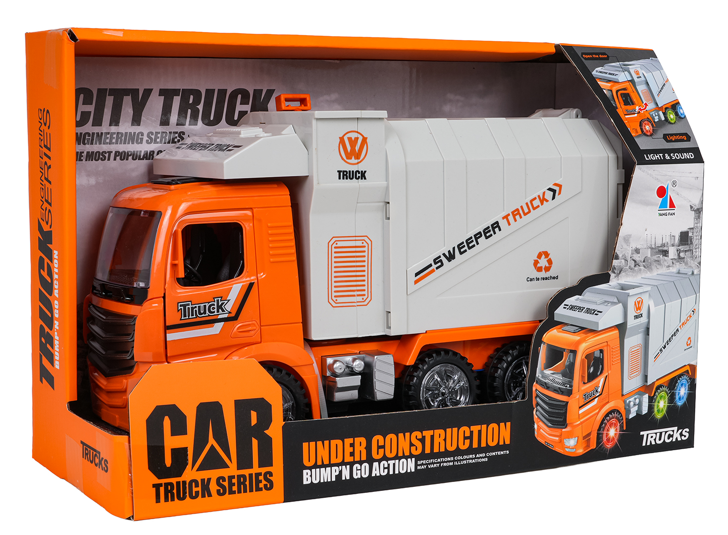 Wymiary | - śmieciarka ok. 27,2 cm x 10 cm x 16,2 cm, - kosz na śmieci ok. ok. 5,5 cm x 3,8 cm x 4,7 cm, - opakowanie ok. 31,4 cm x 20,5 cm x 12,5 cm. |