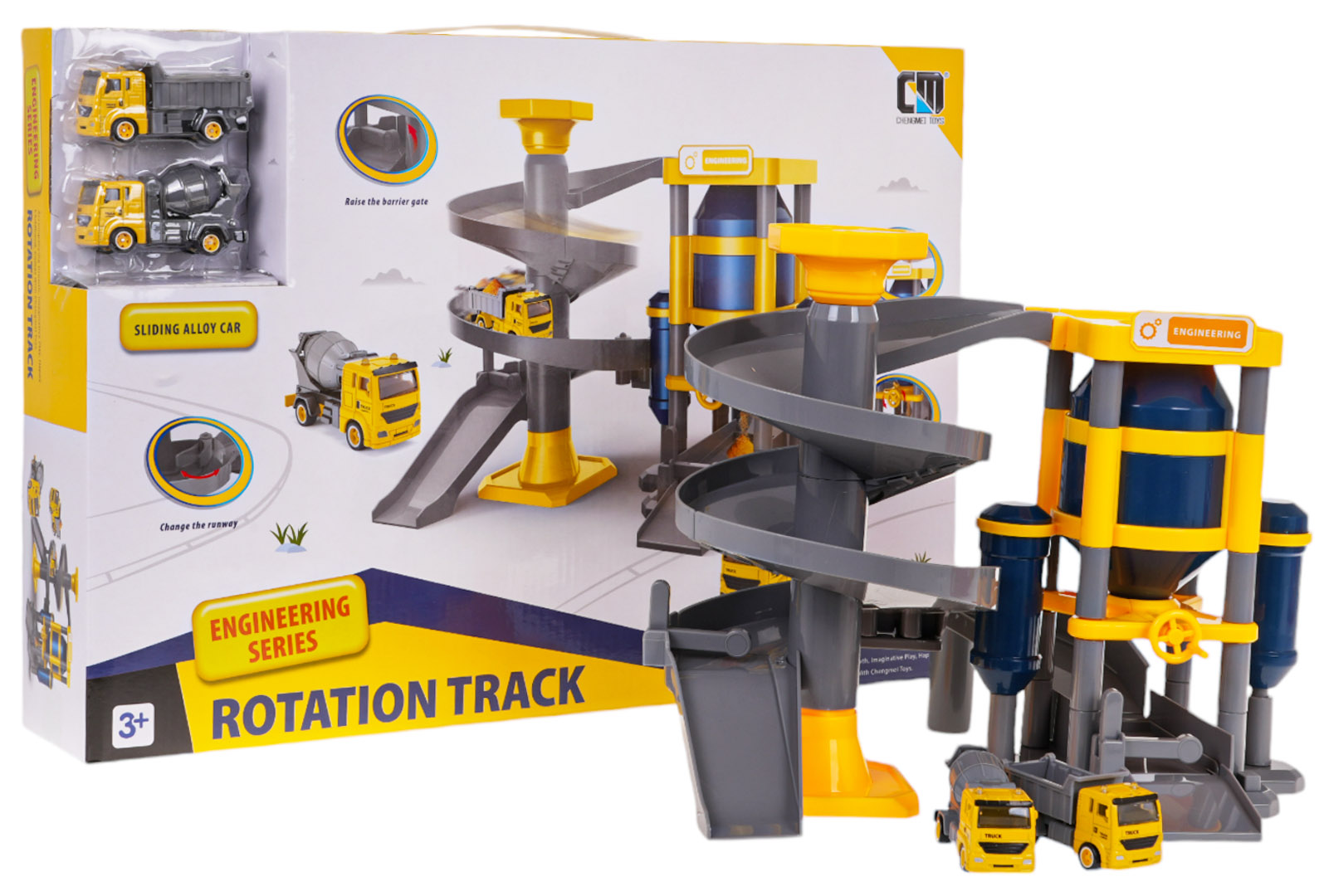 | Plac budowy z silosem, zjeżdżalniami i autkami dla dzieci od 3-go roku życia. Zestaw wykonany został z najlepszej jakości plastiku, z dbałością o szczegóły. Plac budowy składa się z części z silosem, do którego wsypać możemy piasek, a następnie zakręcić korbką i odsypać potrzebną ilość oraz części ze zjeżdżalniami, po której mogą się poruszać pojazdy budowlane dołączone do zestawu. W zestawie znajdziemy wywrotkę i betoniarkę.