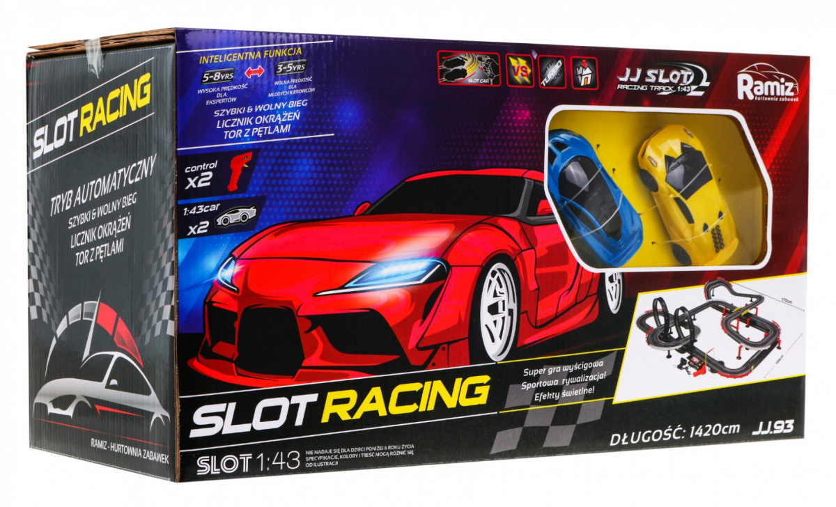 Poszczególne elementy konstrukcyjne pozwolą zbudować tor z ostrymi zakrętami, spiralami i odcinkami prostymi, a wszystko po to, aby maksymalnie uatrakcyjnić zabawę i dodać całej zabawie emocji. Ten niepowtarzalny zestaw to idealna zabawka dla małego amatora wyścigów samochodowych. Tor posiada 2 tryby szybkości – szybki / wolny oraz licznik przebytych okrążeń. Żywa kolorystyka, dokładne i bardzo staranne wykonanie oraz dbałość o szczegóły na pewno przyciągnie uwagę dziecka na dłużej i nie pozwoli mu się nudzić.