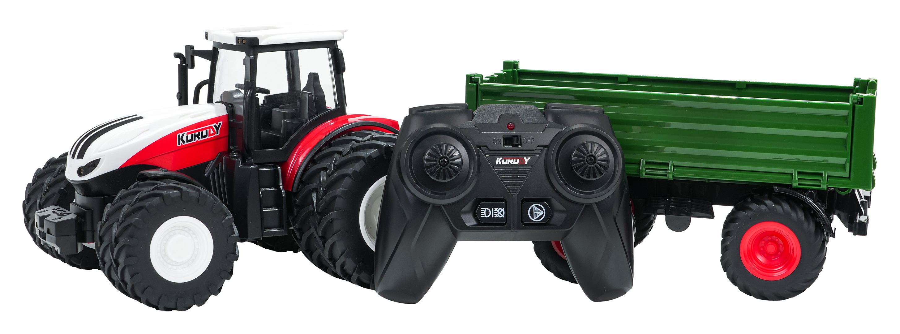 Wymiary | - traktor ok. 20 cm x 16 cm x 12,5 cm, - traktor z naczepą ok. 42 cm x 16 cm x 12,5 cm, - opakowanie ok. 45 cm x 16,5 cm x 17,5 cm. |
