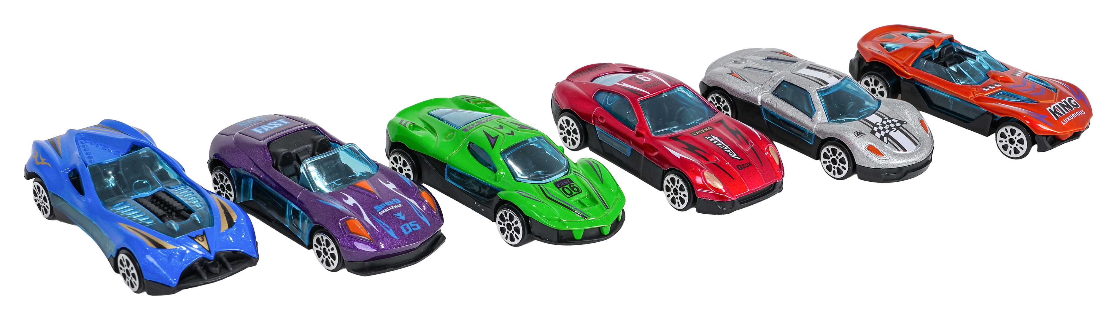 | - elementy konstrukcyjne parkingu, - mata z drogami, - sześć samochodów z metalową karoserią, - naklejki dekoracyjne, - obrazkowa instrukcja. |