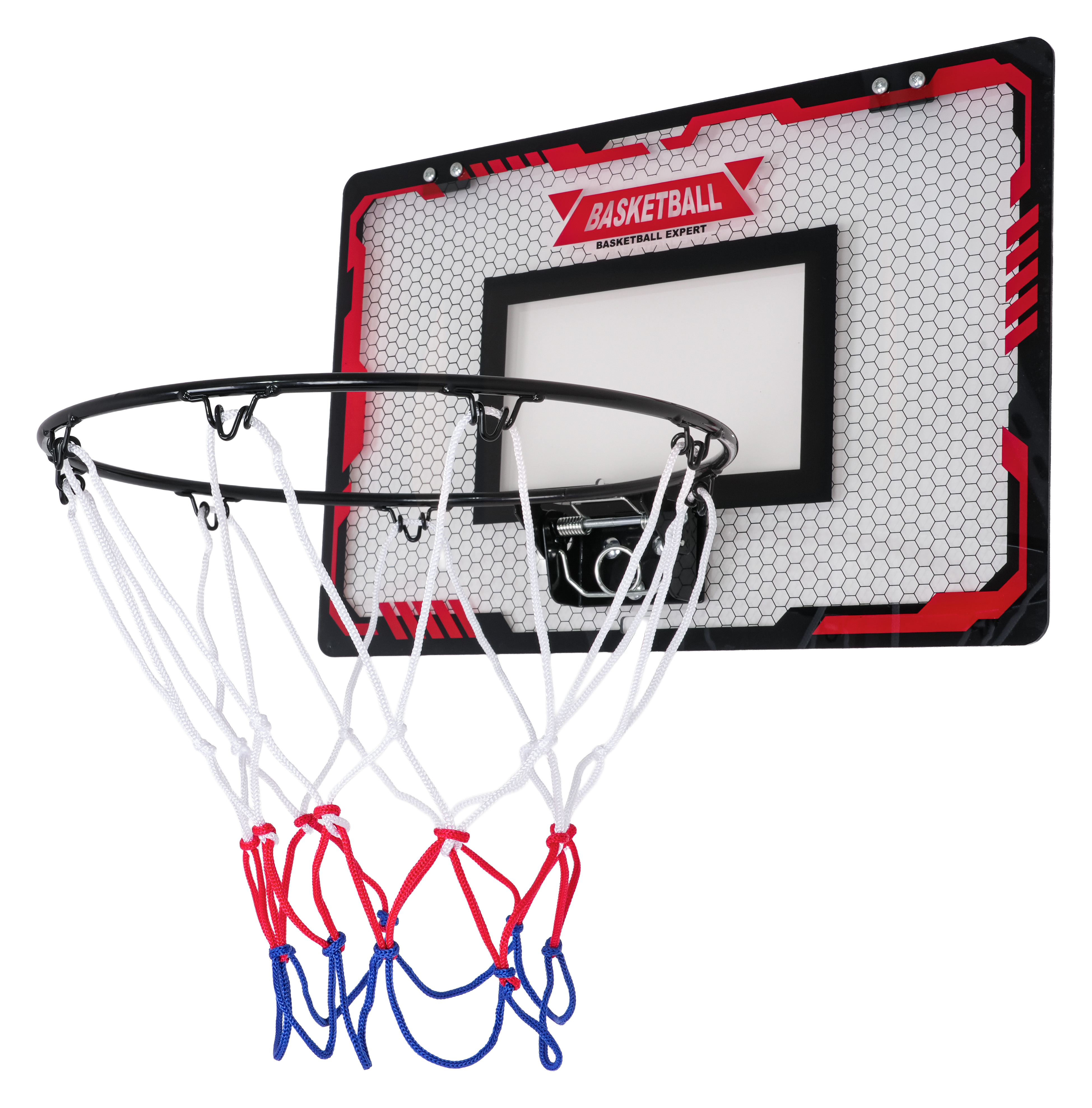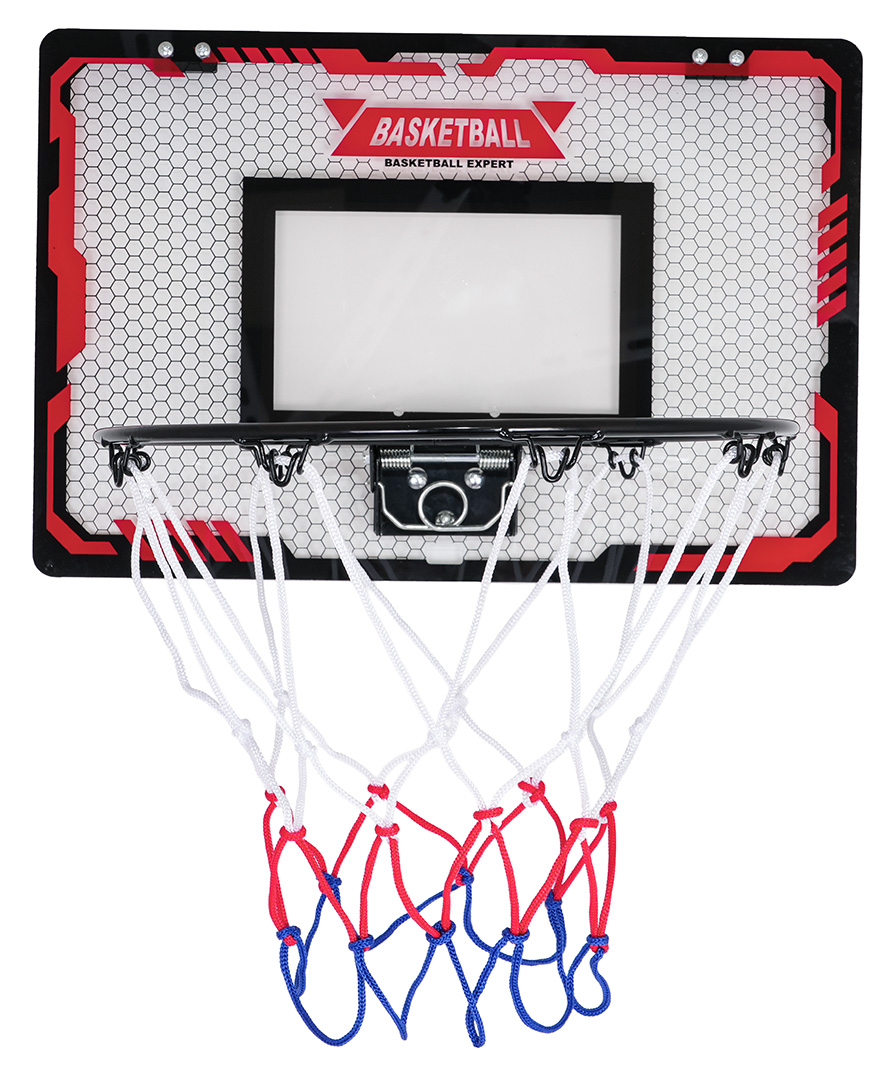 | Zestaw do koszykówki dla dzieci od trzeciego roku życia. Montaż zestawu jest bardzo prosty i zajmuje kilka minut. Gotową tablicę możemy zawiesić na drzwiach za pomocą dołączonych do zestawu haków, lub przykleić do płaskiej powierzchni taśmami z mocnym klejem i haczykami (w zestawie). Tył tablicy obklejony jest grubą pianką, która chroni przed przesuwaniem się tablicy podczas gry oraz tłumi drgania podczas rzutu.