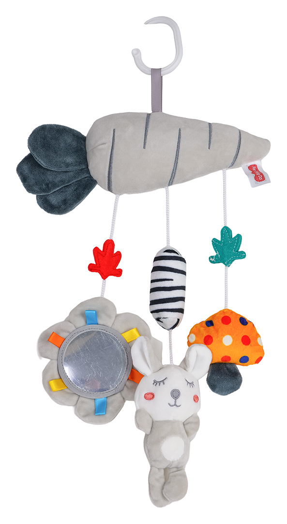 Funkcje: - odpowiednia dla dzieci od pierwszych dni życia, - wykonana z bezpiecznych materiałów, najwyższej jakości, - żywe kolory zachęcają maluszka do sięgania i łapania, - elementy piszczące: grzybek, - elementy szeleszczące: listki marchewki, - dzwony eolskie, - bezpieczne lusterko, - może być mocowana do łóżeczka, wózka, fotelika itp. |