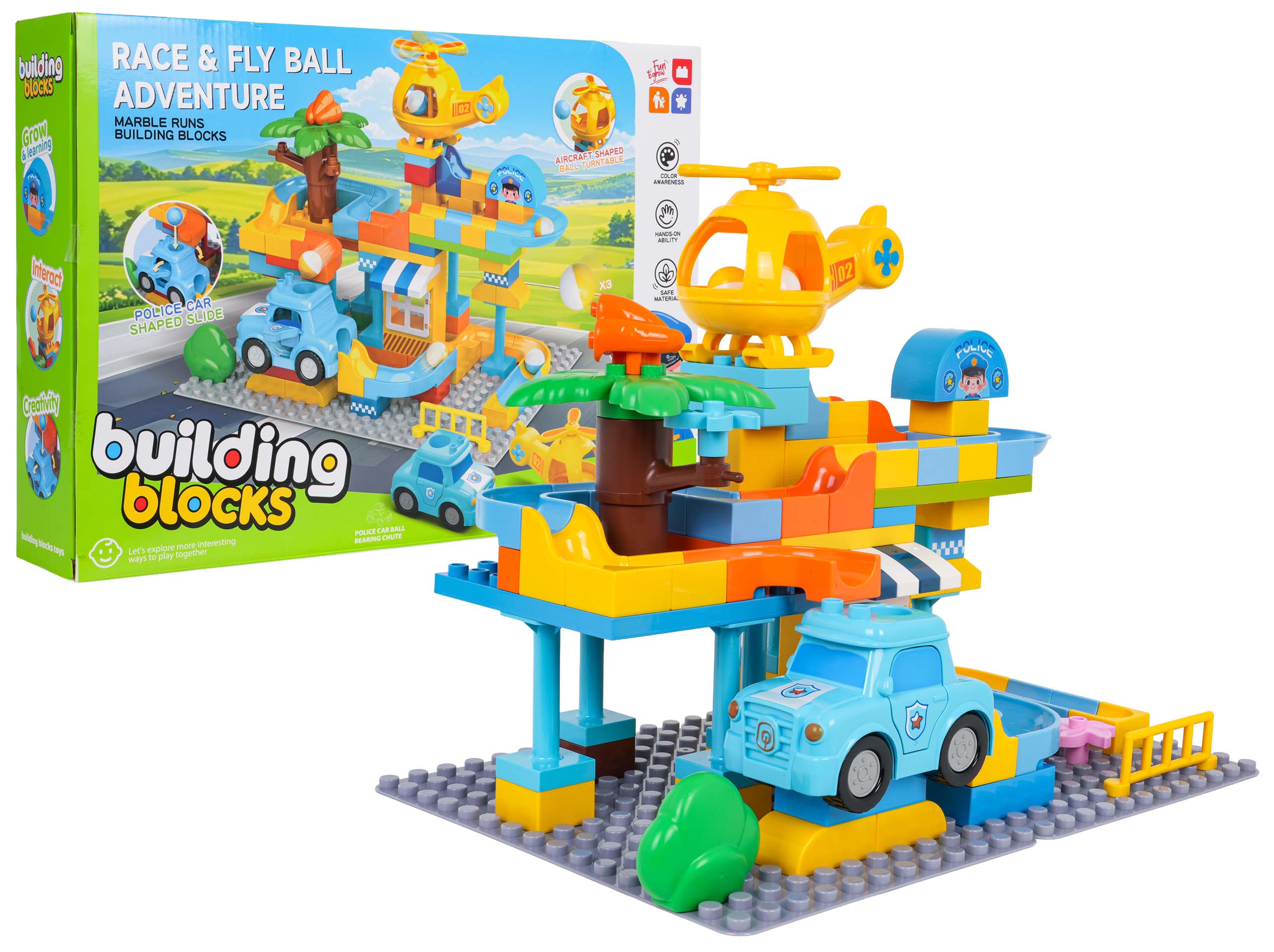 Funkcje: - dla dzieci od trzeciego roku życia, - wykonany z najlepszej jakości materiałów, - łatwe łączenie elementów i stabilna konstrukcja, - bogactwo kolorów stymuluje zmysły dziecka, - autko policyjne i helikopter posiadają otwory, przez które może przelatywać piłeczka, - idealny zestaw do kreatywnej zabawy. |