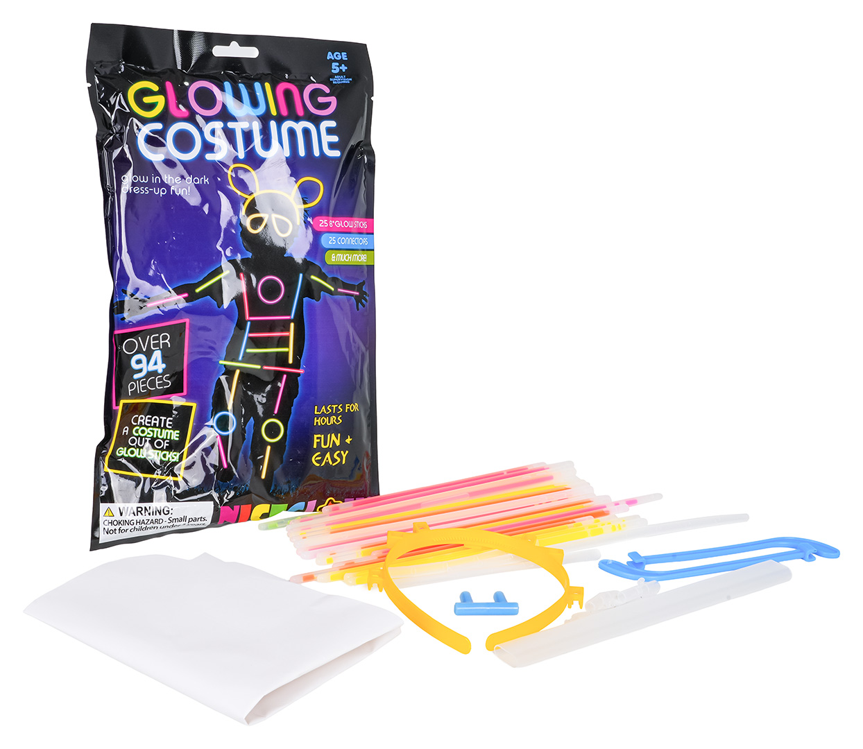 | Zestaw fluorescencyjnych pałeczek dla dzieci od piątego roku życia. Pałeczki mogą być używane do robienia okularów, opasek czy dekoracji stroju. Idealnie sprawdzą się na bale, przedstawienia, imprezy plenerowe. Pałeczki świecą się zazwyczaj między 6 a 8 godzin, w zależności od temperatury otoczenia. Zestaw jest ławy w użyciu. Wystarczy zgiąć pałeczki aż do kliknięcia, a potem wstrząsnąć. Następnie formujemy z nich np. okulary czy opaskę używając łączników znajdujących się w zestawie.