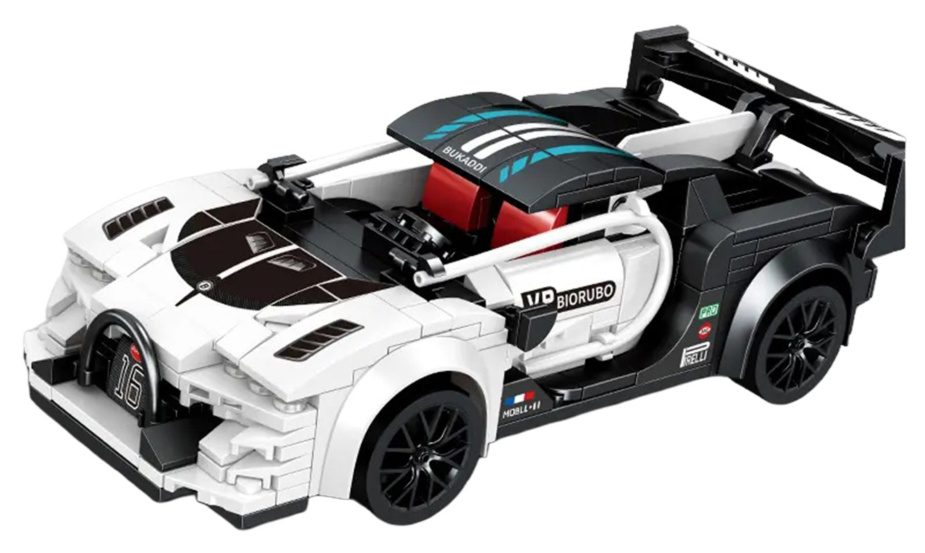 | Wysokiej jakości klocki konstrukcyjne dla dzieci od szóstego roku życia. Zestaw składa się z klocków, z których zbudować można białe auto sportowe. Auto jeździ we wszystkich kierunkach do przodu do tyłu w prawo i lewo. Sterować je można za pomocą pilota dołączonego do zestawu lub przy pomocy aplikacji w telefonie. Aplikację można pobrać skanując kod QR znajdujący się na opakowaniu. Dzięki aplikacji można nie tylko poruszać pojazdem, ale również zaprojektować jego ruchy. Pojazd zasilany jest akumulatorem typu 3,7V (w zestawie), pilot bateriami typu 2 x AA 1,5V (brak w zestawie).