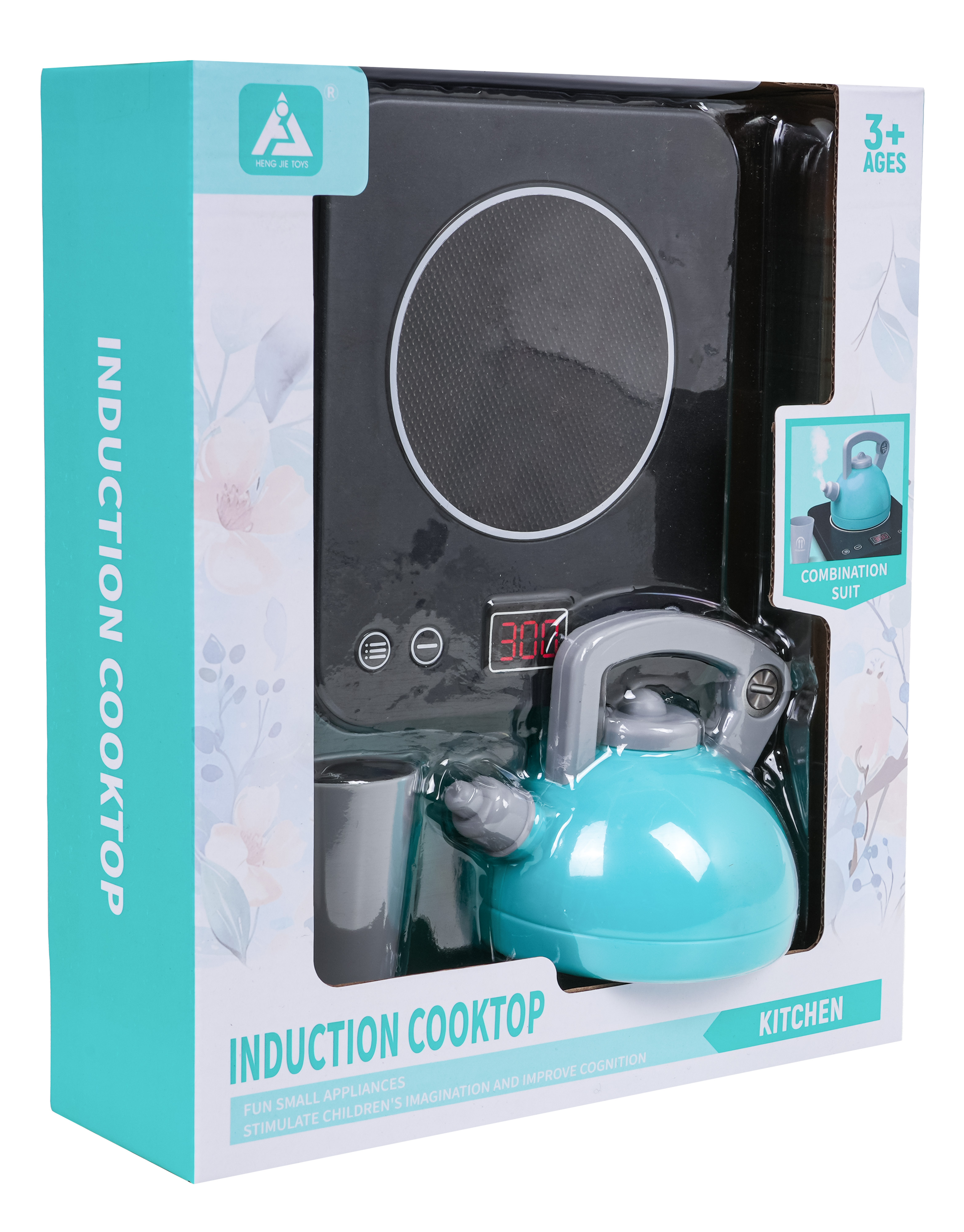 | Interaktywny zestaw zabawkowa kuchenka indukcyjna i czajnik dla dzieci od trzeciego roku życia. Zestaw wykonano z dbałością o szczegóły z najlepszej jakości materiałów. Kuchenka zasilana jest bateriami typu 3 x AAA 1,5V (brak w zestawie), posiada efekty dźwiękowe i świetlne. Wydaje ona dźwięki gotowania i ma podświetlany palnik. W zestawie mamy też czajniczek i kubeczek.