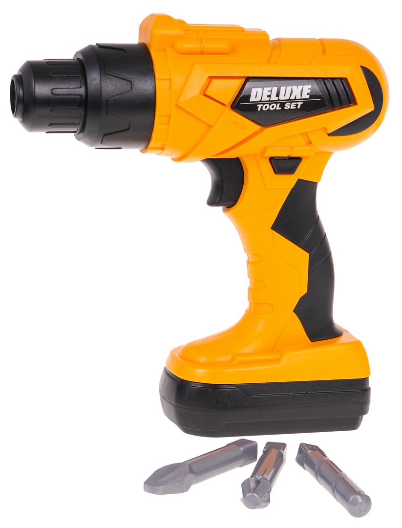 Bogato wyposażony zestaw narzędzi z interaktywną wiertarko-wkrętarką oraz skrzynką narzędziową dla dzieci powyżej 3-go roku życia. Zestaw wykonany został z najlepszej jakości plastiku i posiada aż 37 elementów. Prócz dużej skrzynki na narzędzia, wyglądającej profesjonalnie w zestawie mamy też: interaktywną wiertarko-wkrętarkę z wymiennymi bitami, okulary ochronne, maseczkę, śrubokręt, młotek, klucz francuski, kombinerki, obcęgi, oraz wiele śrubek, nakładek, drewienek do wkręcania. Wiertarko-wkrętarka zasilana jest bateriami typu 2 x AA 1,5 V (brak w zestawie). Wkręca i wykręca, posiada wymienne bity, oraz wyjmowany akumulator.