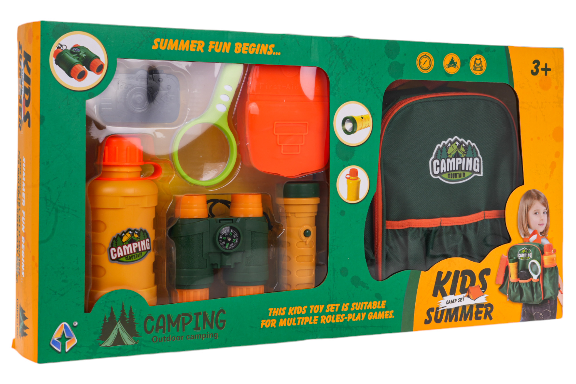 | Zestaw małego odkrywcy, dla ciekawych świata dzieci od 3-go roku życia. W skład zestawu wchodzi plecak, lornetka, latarka, lupa, pojemnik na napój, pojemnik na żywność, aparat. Plecak zawiera liczne przegródki, tak by mógł pomieścić całe wyposażenie małego odkrywcy. Latarka zasilana jest bateriami typu 2 x AAA 1,5 V (brak w zestawie). Funkcje zestawu: - przeznaczony dla dzieci od 3-go roku życia, - zawiera wszystko, co niezbędne małemu odkrywcy, - lornetka i latarka posiadają wbudowany kompas, - latarka z efektem światła. |