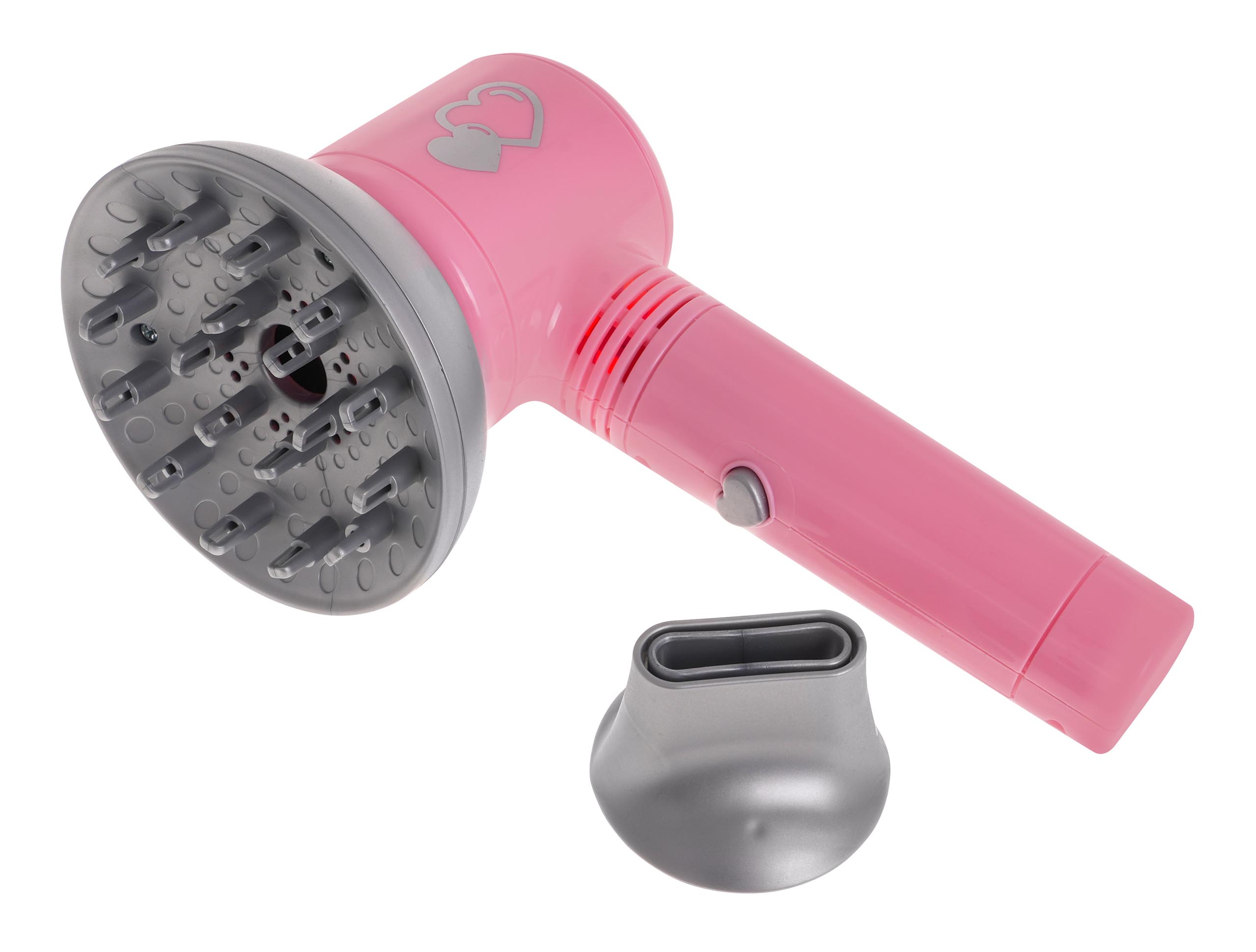 Bogato wyposażony zestaw fryzjerski dla dzieci od 3-go roku życia. Suszarka zasilana jest bateriami i działa jak prawdziwa. Posiada delikatny nawiew i wydaje odgłosy suszenia, dzięki czemu imituje prawdziwe suszenie włosów. Dodatkowo suszarka posiada dwie wymienne nakładki, z dyfuzorem oraz z koncentratorem. Suszarka zasilana jest bateriami typu 2 x AAA, baterii brak w zestawie. | |