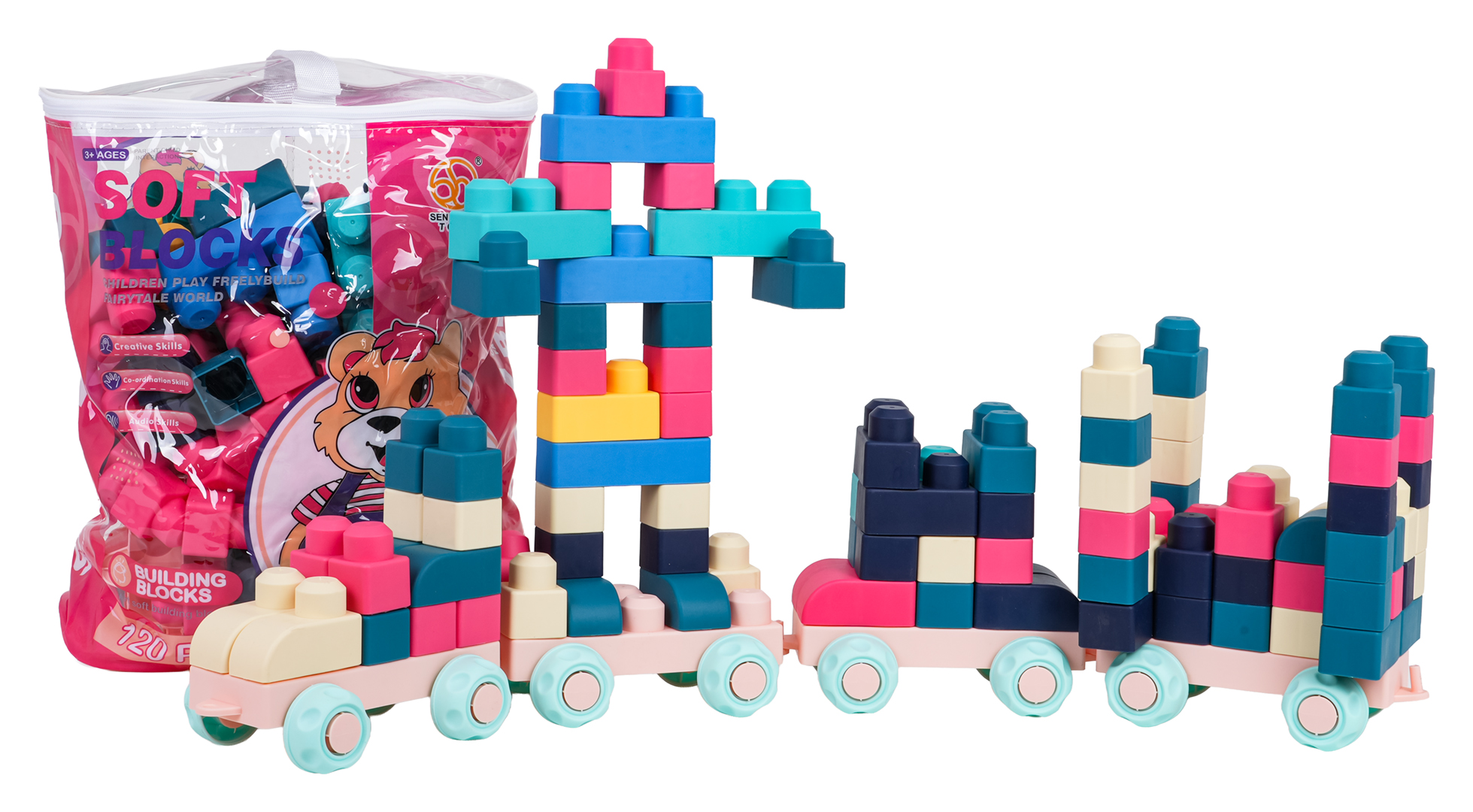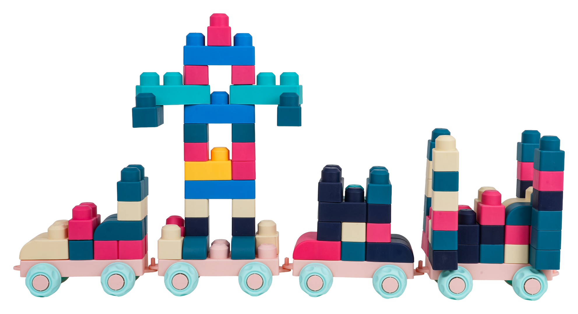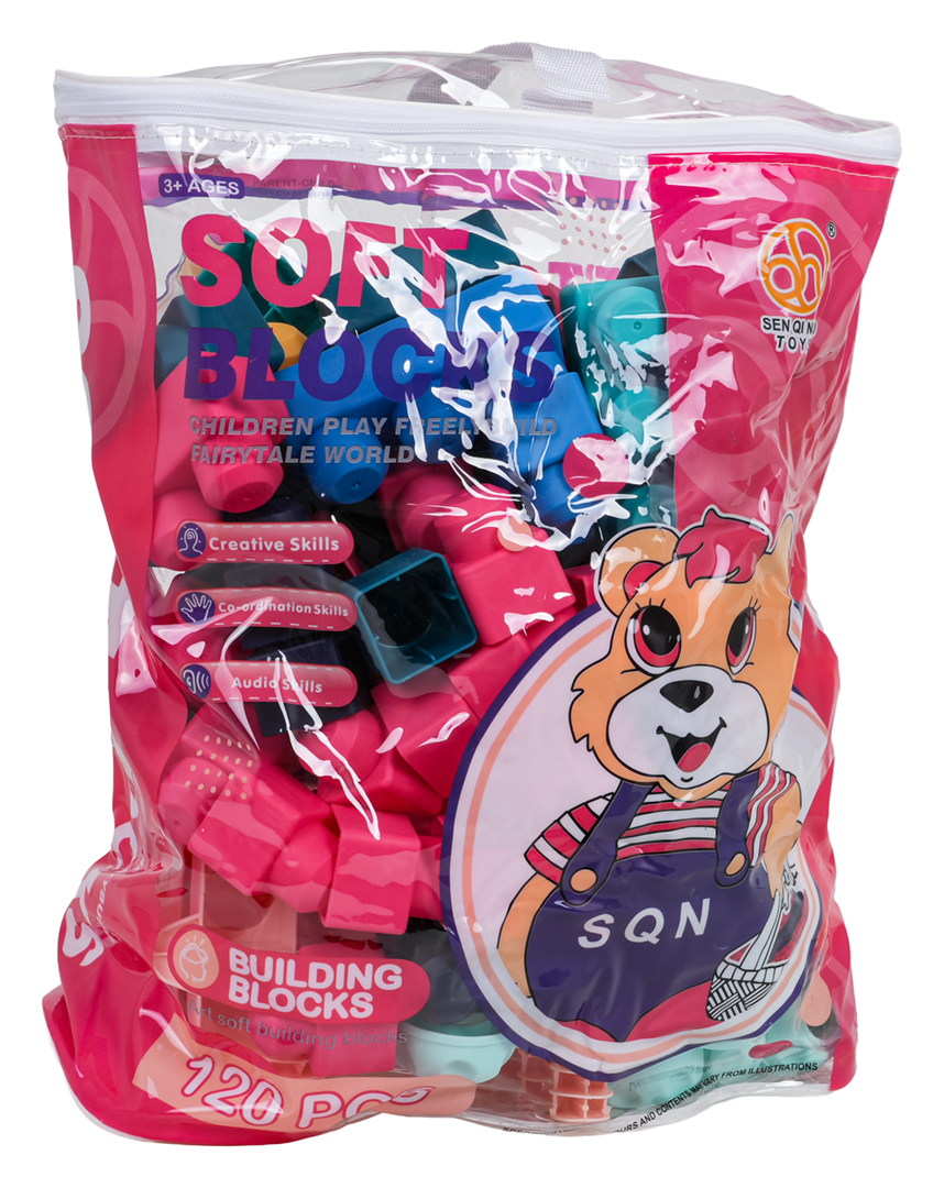 | Zestaw kolorowych miękkich klocków dla dzieci od trzeciego roku życia. Zestaw wykonano z bezpiecznego dla dzieci i środowiska materiału PVC. Klocki są lekkie i nie posiadają ostrych zakończeń. Bardzo łatwo je utrzymać w czystości, po wyparzeniu, nie tracą kolorów. Klocuszki możemy dowolnie wyginać, a po wygięciu wracają do swojego poprzedniego kształtu.