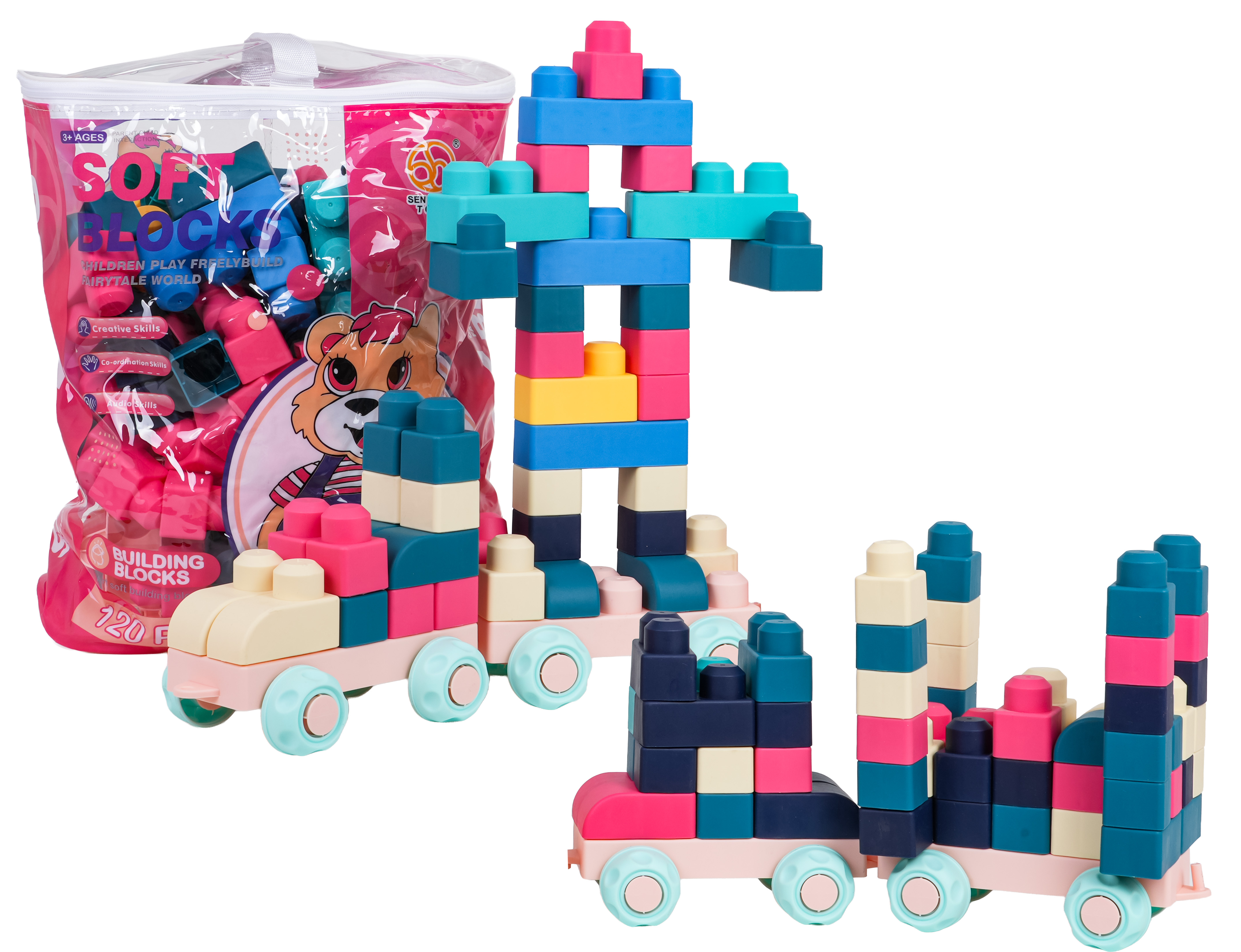 Funkcje zestawu: - przeznaczone dla dzieci powyżej trzeciego roku życia, - 120 elementy w zestawie, - wykonany w żywych kolorach przyciągających wzrok dziecka i zachęcających do zabawy, - łatwe w utrzymaniu czystości, po wyparzaniu nie tracą koloru, - nie posiadają ostrych zakończeń, - można je dowolnie wyginać, - torba z rączką na klocki. |