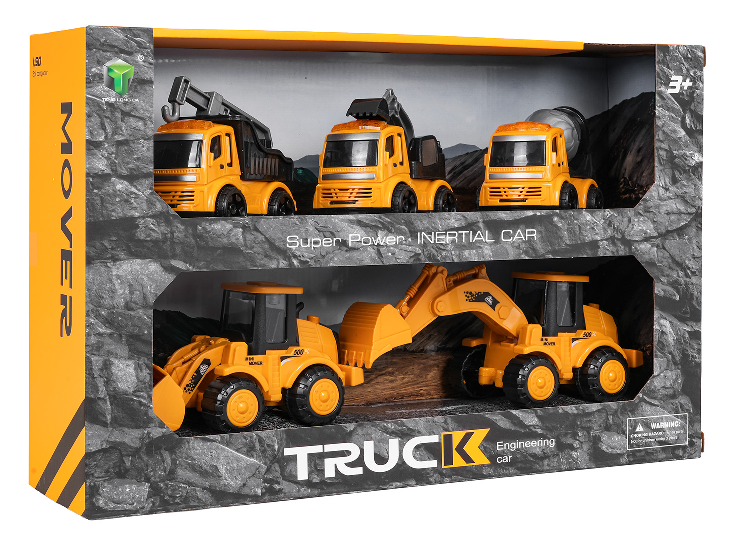 Wymiary | - koparka ok. 14 cm x 6,3 cm x 7 cm, - koparko-ładowarka ok. 8 cm x 7,5 cm x 5 cm, - dźwig ok. 8 cm x 8,5 cm x 5 cm, - betoniarka ok. 8,5 cm x 5 cm x 7 cm, - spychacz ok. 12,5 cm x 6,5 cm x 5,5 cm, - opakowanie ok. 32,5 cm x 20,5 cm x 8 cm. |
