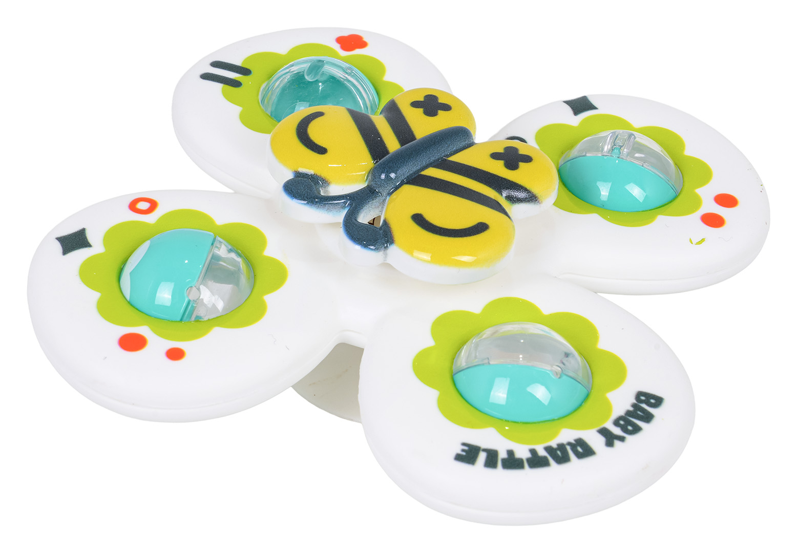 Funkcje zabawki: - odpowiednia dla dzieci od pierwszych dni życia, - wykonana z najlepszej jakości materiałów, - spinerki posiadają przyssawki, - spinerki wydaję delikatne odgłosy podczas obracania, - elastyczne łożysko zapewnia długie obroty. |