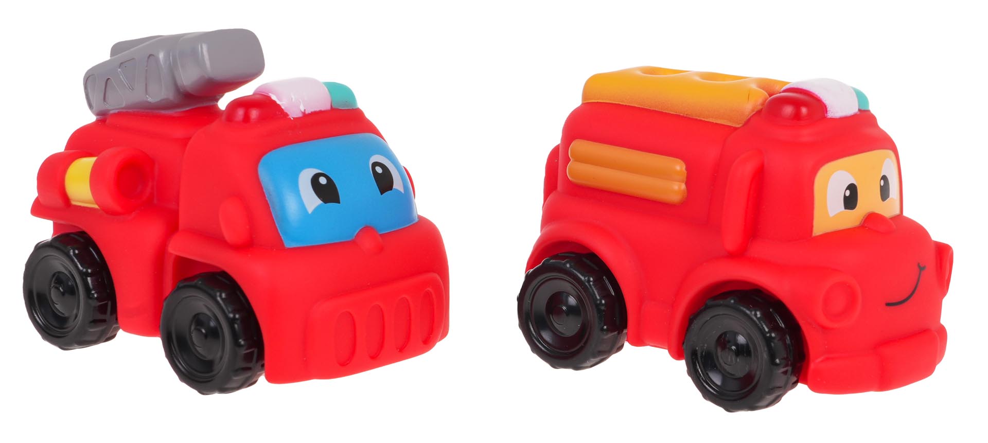 | Kolorowy zestaw z figurkami strażaków i pojazdami strażackimi dla dzieci powyżej 3-go roku życia. W skład zestawu wchodzą dwie figurki strażaków i dwa autka strażackie. Autka i figurki są gumowe, koła w pojazdach zaś plastikowe. Funkcje zestawu: - odpowiedni dla dzieci powyżej 3-go roku życia, - wykonany w żywych kolorach, - idealny do odgrywania ról, - figurki strażaków posiadają obrotowe główki, - strażak z żółtym kaskiem posiada grzechotkę w środku, - autka posiadają grzechotki w środku. |