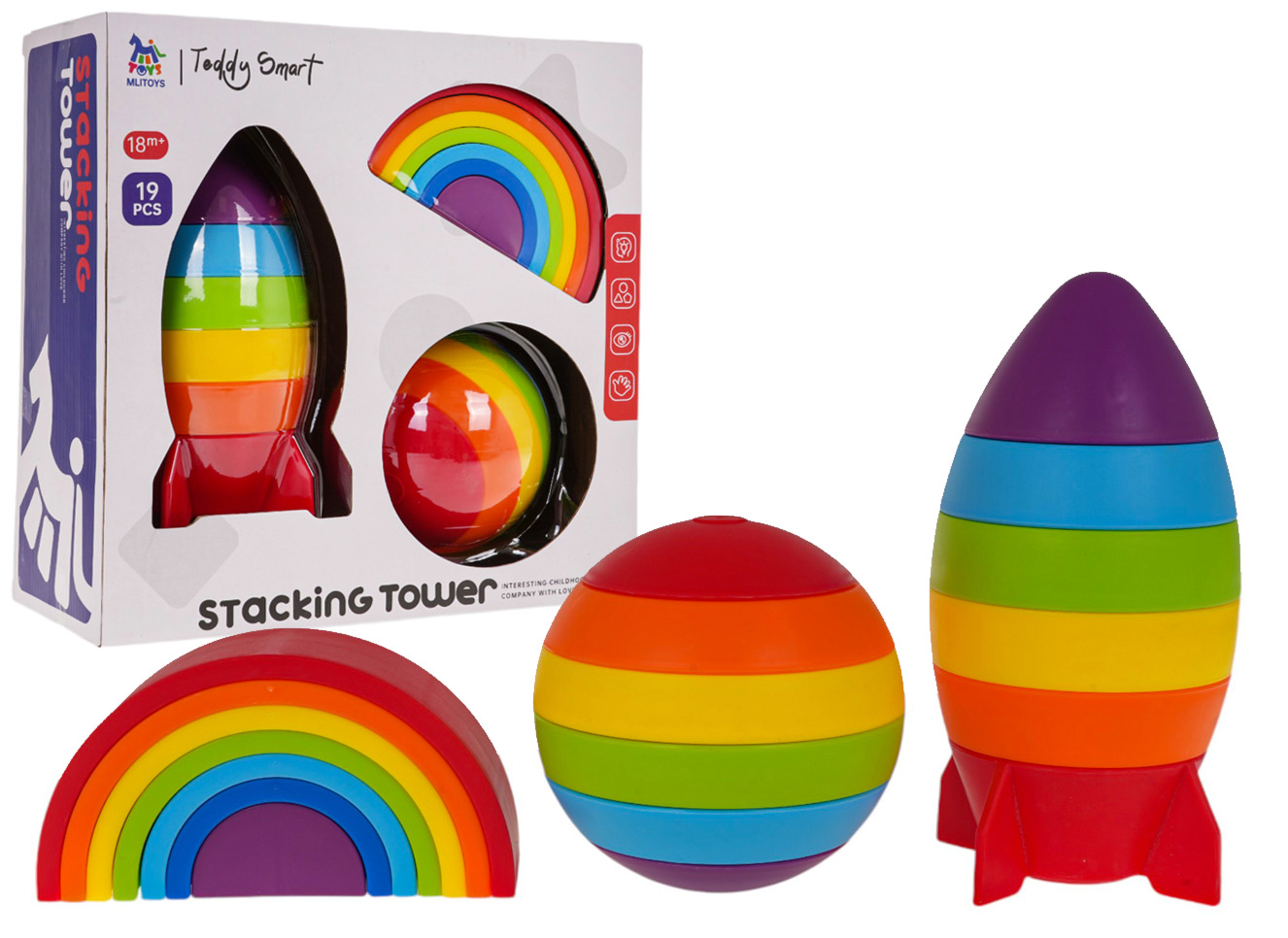 | Zestaw zabawek sensorycznych do układania, dla dziecka od 18-go miesiąca życia. Zestaw składa się z 19 elementów w różnych kolorach, z których maluszek ułożyć może rakietę, tęczę i piłkę. Różnorodne, żywe kolory pobudzają zmysły maluszka i zachęcają do zabawy. Ten zestaw daje nieograniczone możliwości zabawy. Funkcje zestawu: - odpowiedni dla dzieci od 18-go miesiąca życia, - wykonany z najlepszej jakości materiałów, - bezpieczny dla maluszków, - różnorodność i bogactwo kolorów, - wiele elementów do ułożenia, - stymuluje zmysły dziecka, - rozwija zdolności manualne i zręcznościowe, - ćwiczy koncentrację i koordynację. |